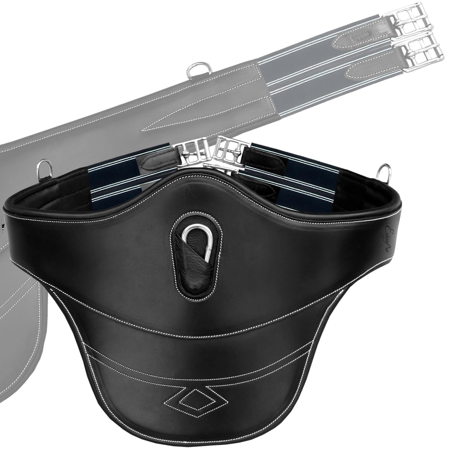 The girth's reinforced belly guard avoids any long-term deformation occurring and allows better shock absorption. The elastic sections on both sides make breathing easier for the horse.