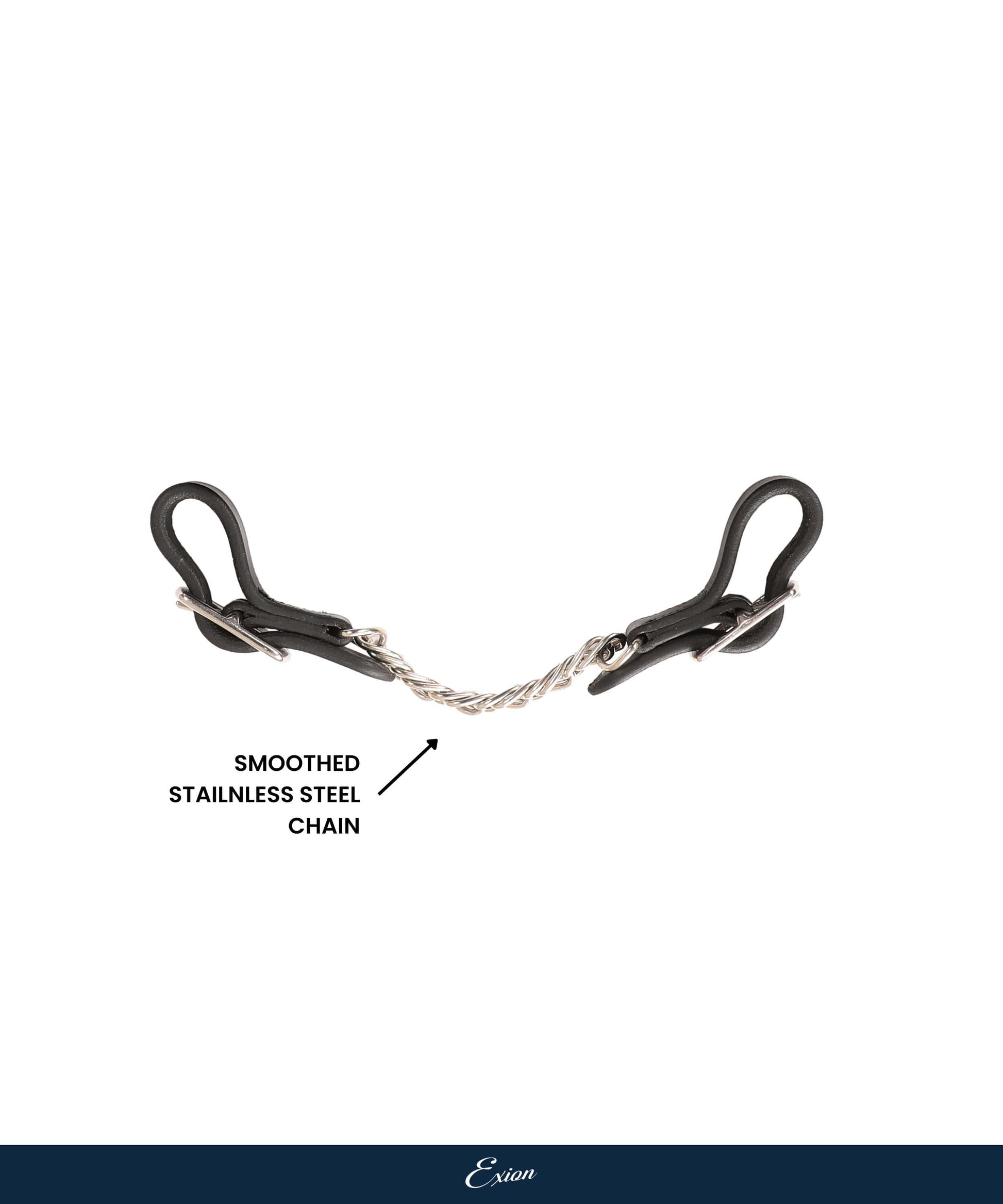 A horse-bit curb chain, or leather curb strap, is a piece of horse tack required for proper use on any type of curb bit or shanked bits. They are a vital piece of bit accessories and the main use of a leather strap curb chain is to enhance and control the lever action of a curb bit.