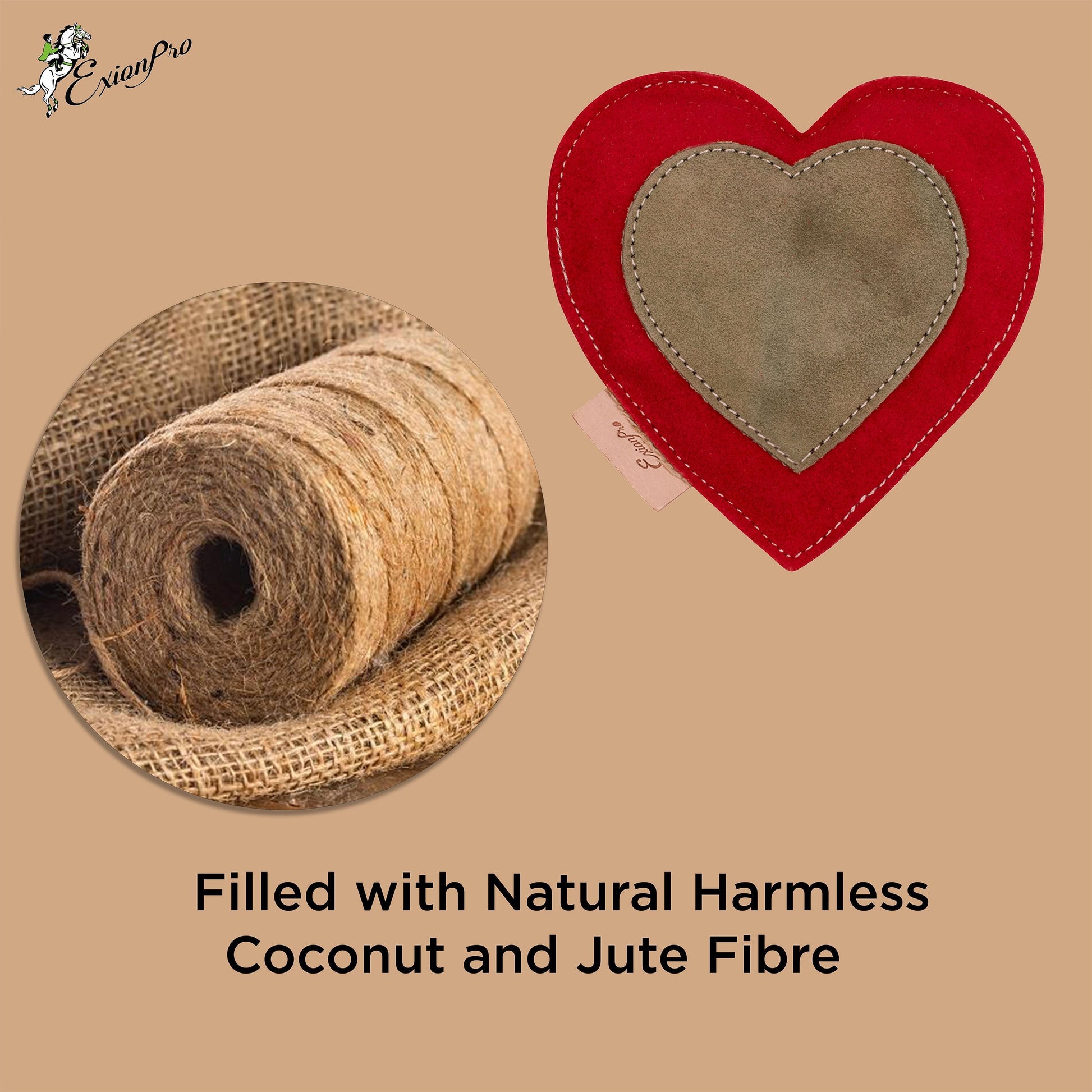 ExionPro Natural Leather Heart Dog Toy with Non Toxic Fiber Stuffing - Red Color