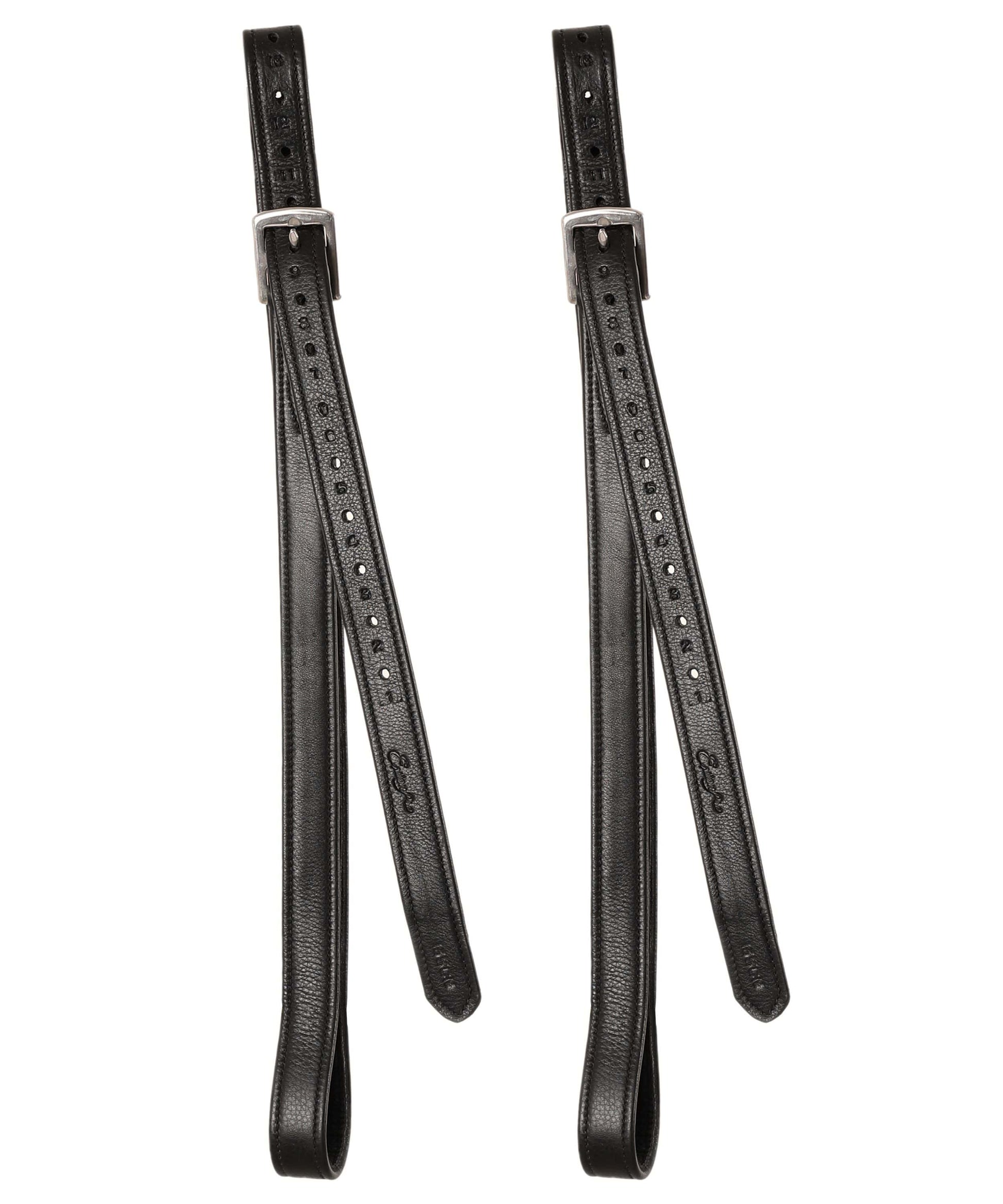 Special flat stainless steel buckles that insert perfectly over the stirrup bars and flat under the rider's leg, ensuring closer contact with the horse.