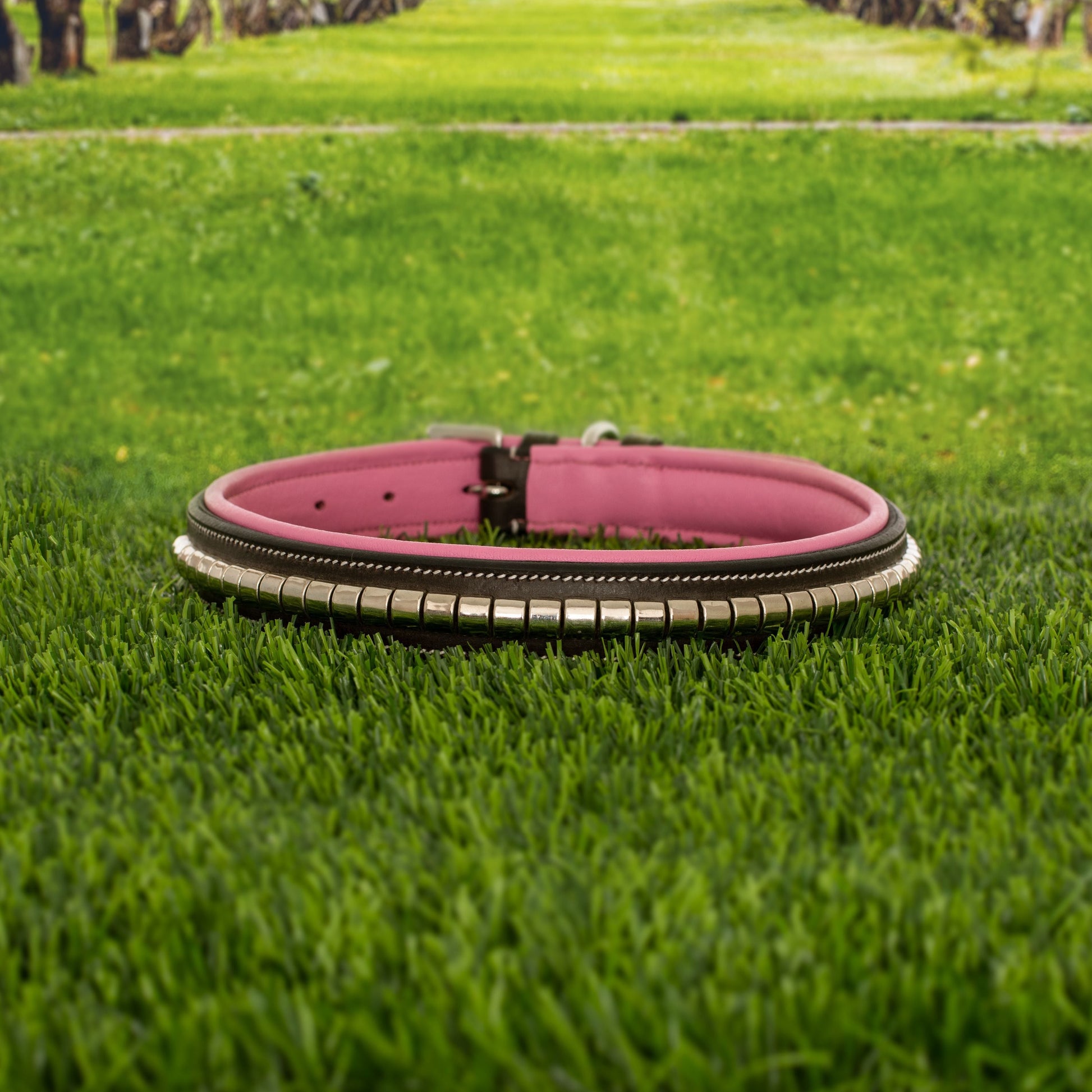 ExionPro Silver Clincher Padded Leather Dog Collar - Pink Padding