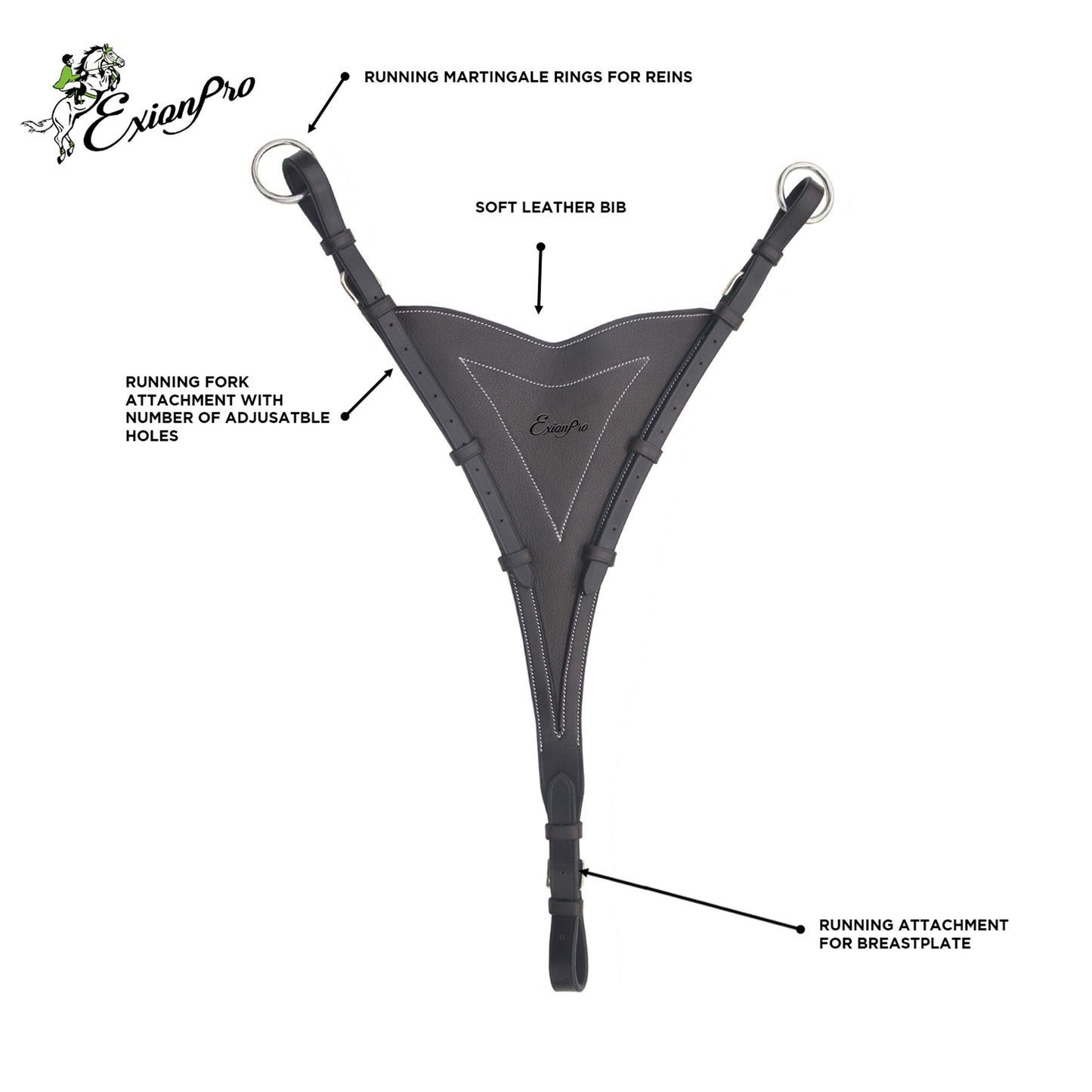 Exion Soft Leather Bib Running Attachment for Horse Martingale