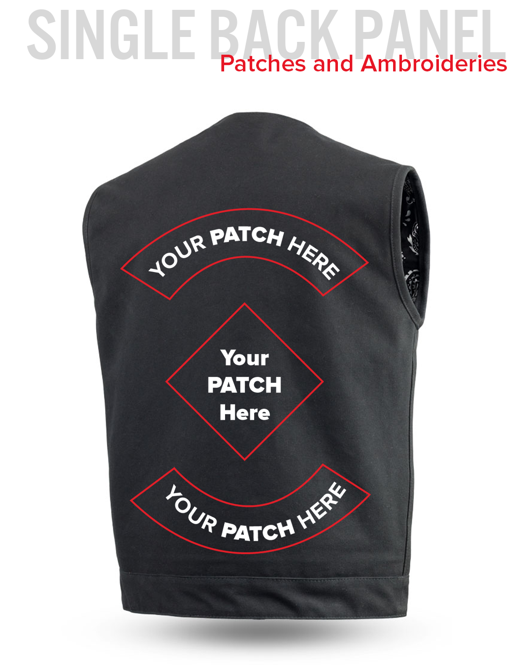 Love a club vest, but need more pockets? The Fairfax is the one for you. It's got eight hidden utility pockets under a flap in the front of this raw canvas vest, along with chest and slash pockets out front. Two conceal carry pockets are hidden inside in the black bandana print liner, which itself has an easy access panel to add patches and embroideries. And it's got an armor pocket for CE-2 armor!