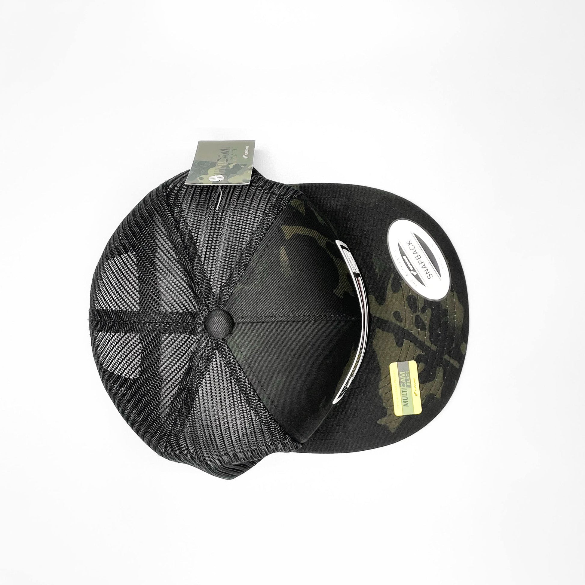 - - Classic all multicam camo and black mesh Yupoong 6006 trucker cap with premium, matching mesh panels