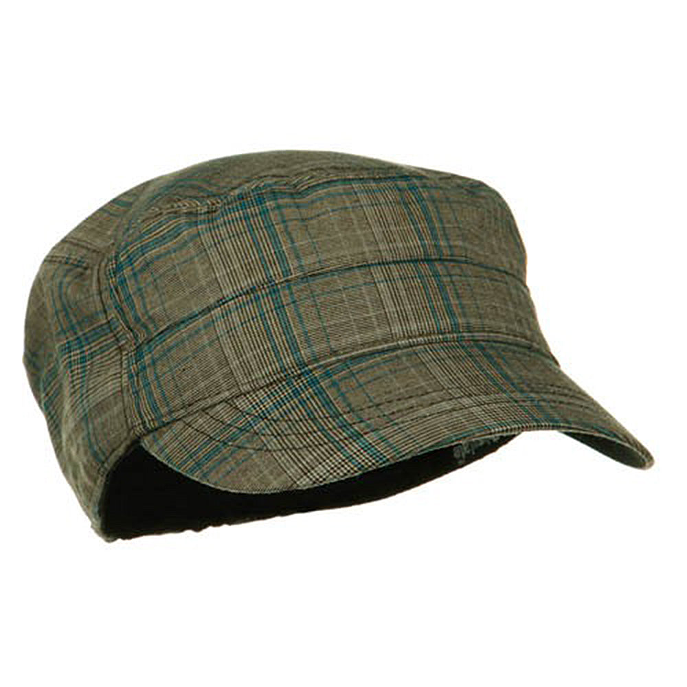 Features & Design, Short bill with easily crushable crown, accented with plaid design in mixed colors of , green, grey and black.