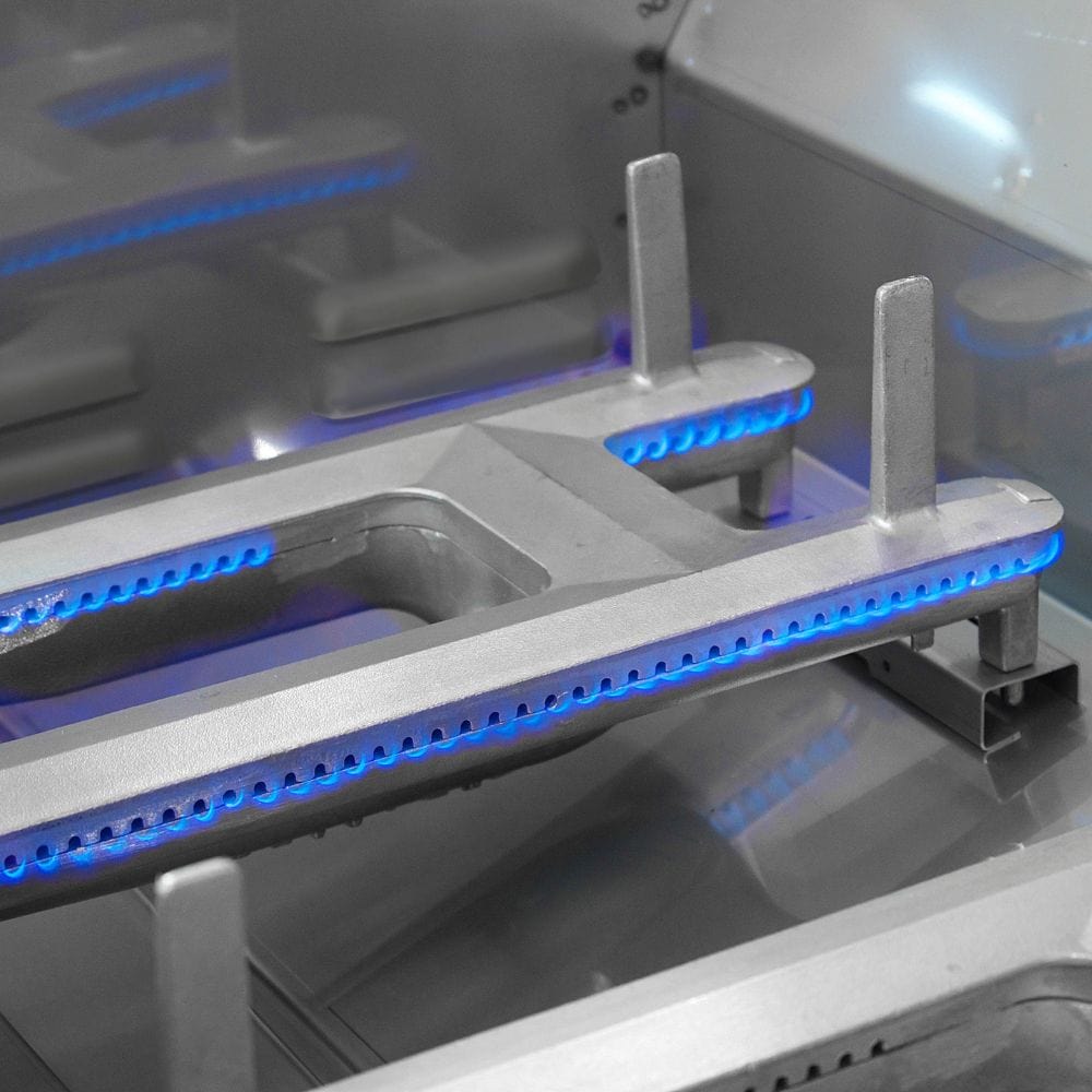 - 12-lb cast stainless steel burners are backed with a lifetime warranty