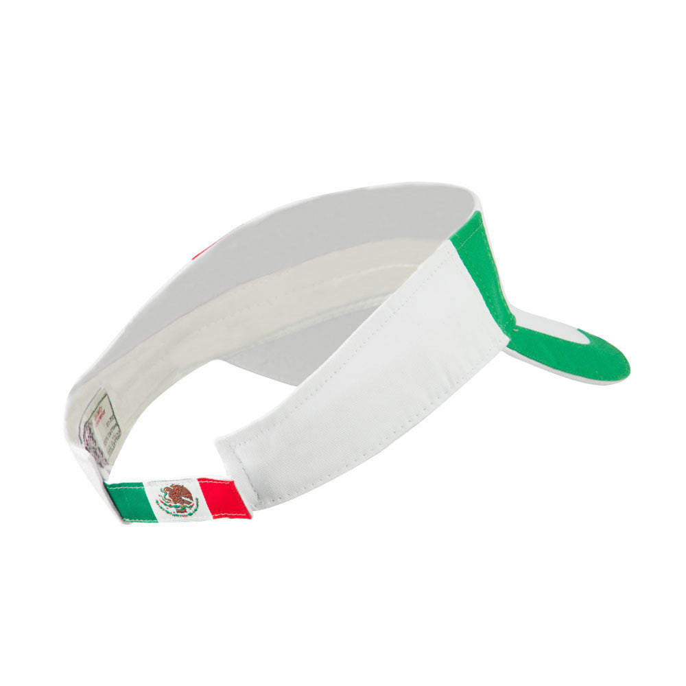 Product Type, Adjustable cotton visor with embroidered design of US and Mexican flags.