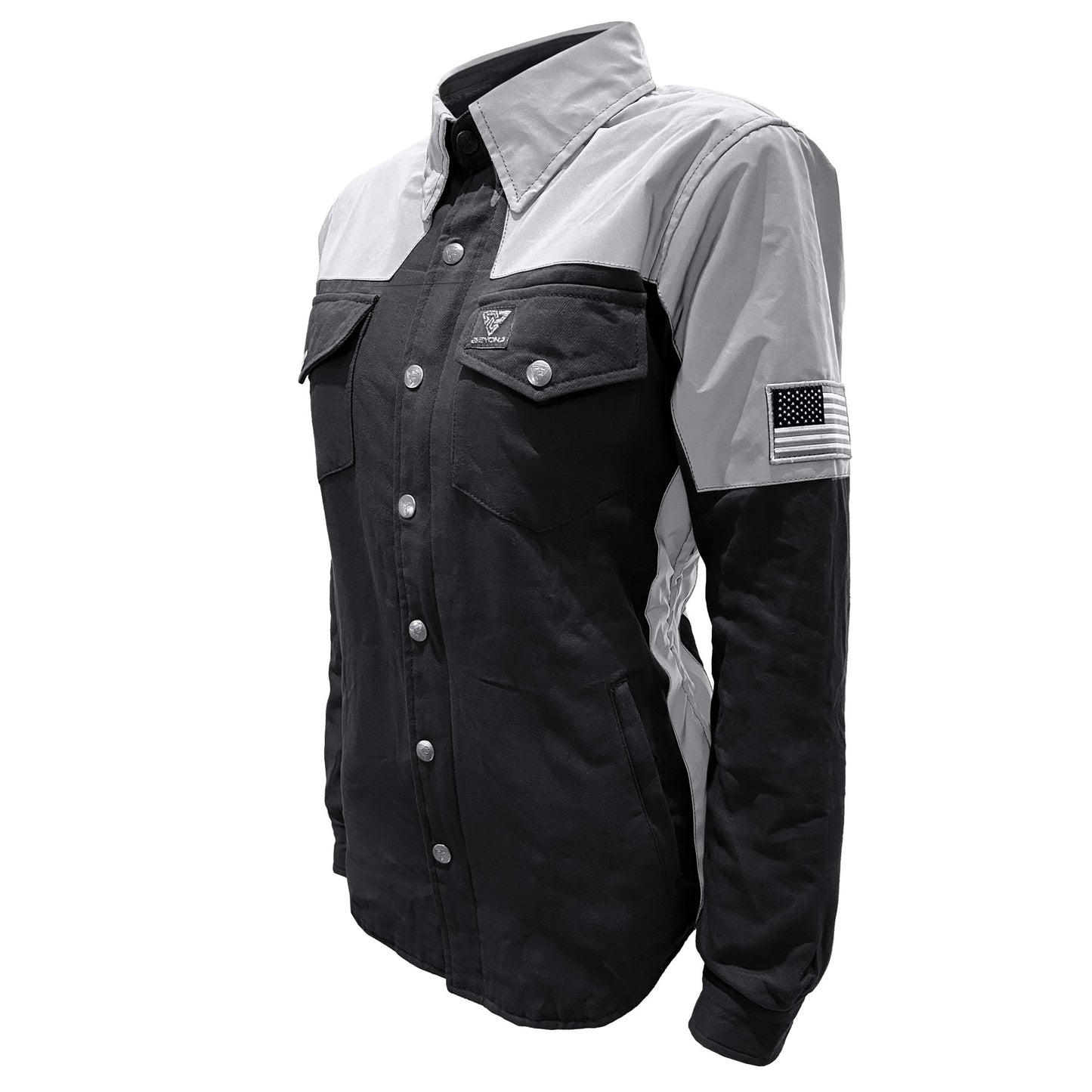 Introducing the latest innovation in rider safety and comfort - the Flannel Reflective Shirt "Alloy Eclipse" for Women - Black and Silver with Level 1 pads included. Beyond Riders proudly presents a shirt that's not just an apparel but a commitment to safety, especially designed for those who love to ride into the night.