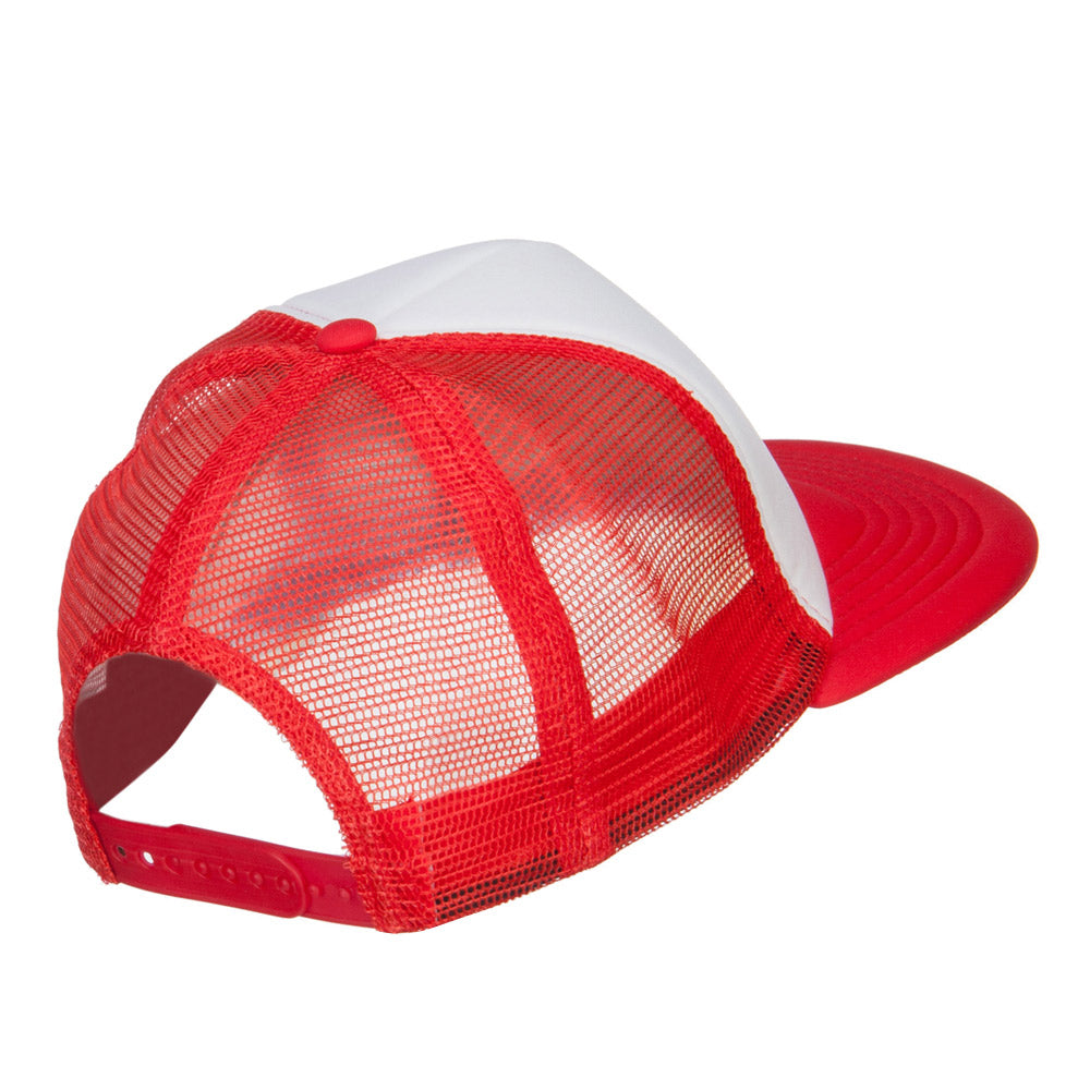 Design, 1 front foam panel, 4 mesh back panels, constructed front crown, stiff and flat bill, 5-panel design
