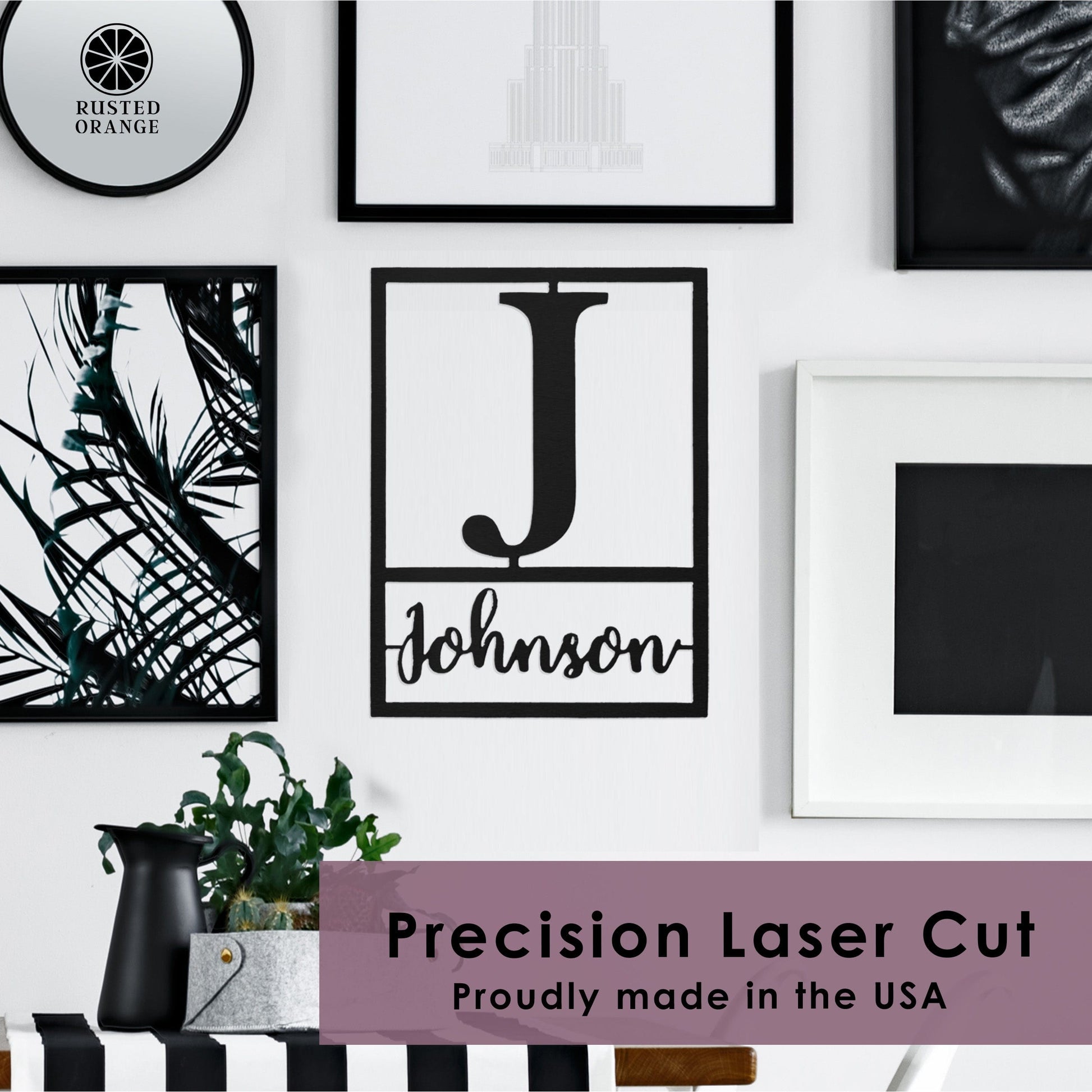 Each piece is laser-cut in the USA from durable steel with crisp, sharp edges. The clean design makes it a versatile accent for any wall, entryway, or gallery space.