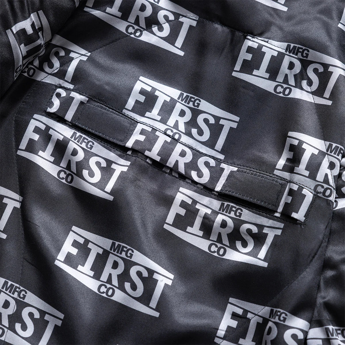- Three panel black satin FMCo logo liner