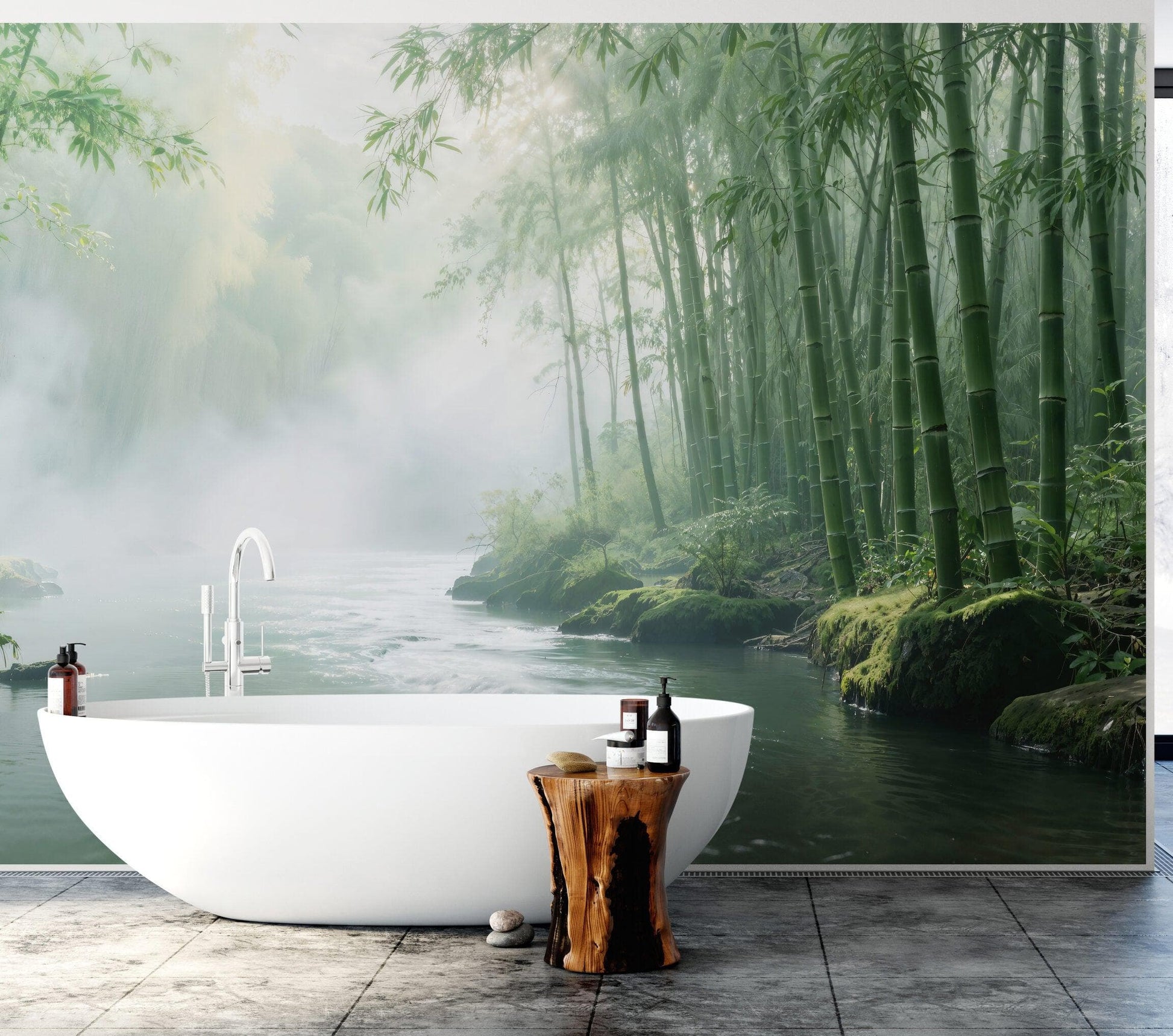Foggy Bamboo Forest River Wallpaper Mural. #6986