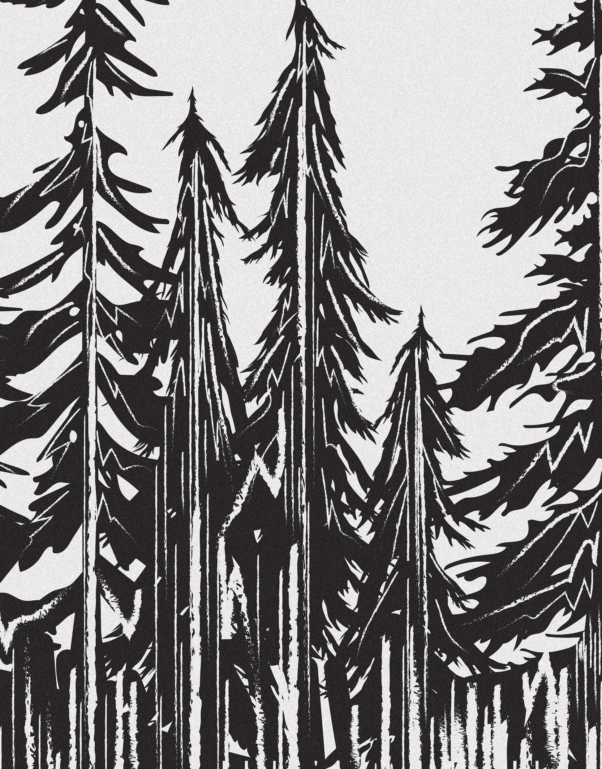 Forest Trees Trunks Grunge Illustration Wall Mural. Peel and Stick Wallpaper. Abstract Lines Silhouette Outdoors Scenery. #6345