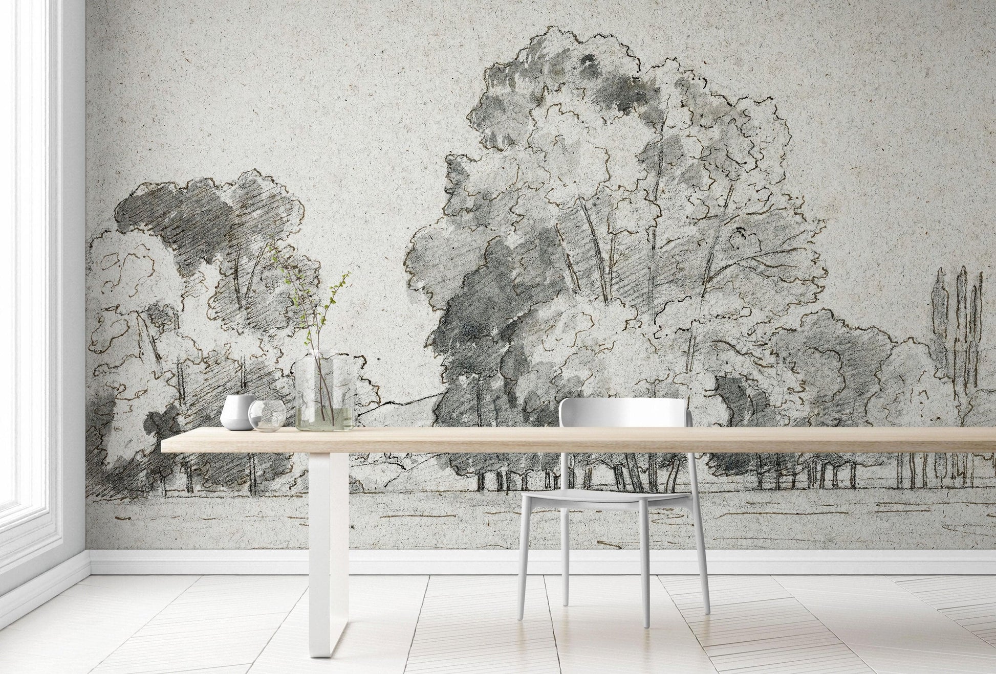 Forest Trees Wallpaper Peel and Stick Mural, Grove of Trees Drawing by Camille Pissarro. #6344