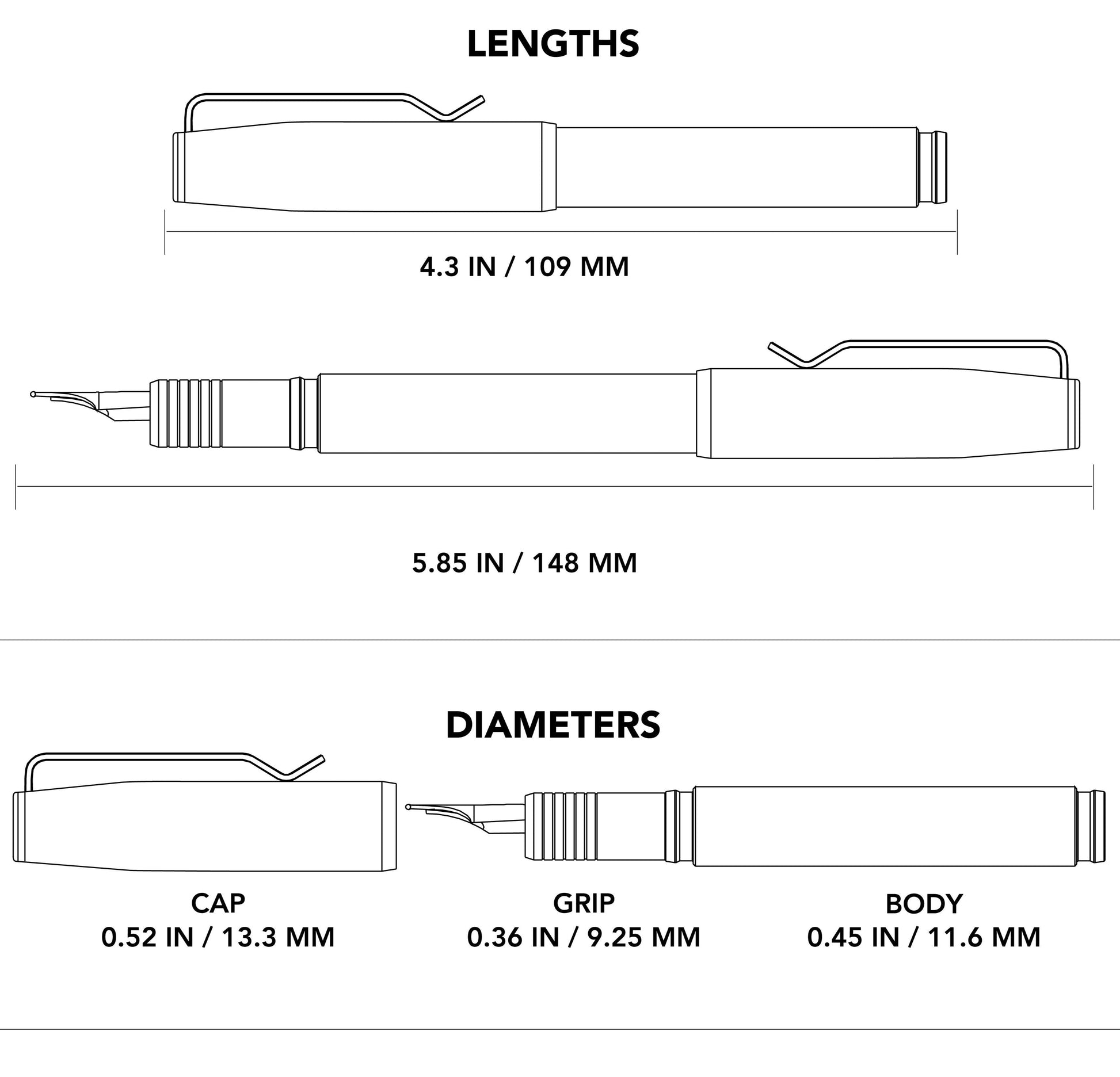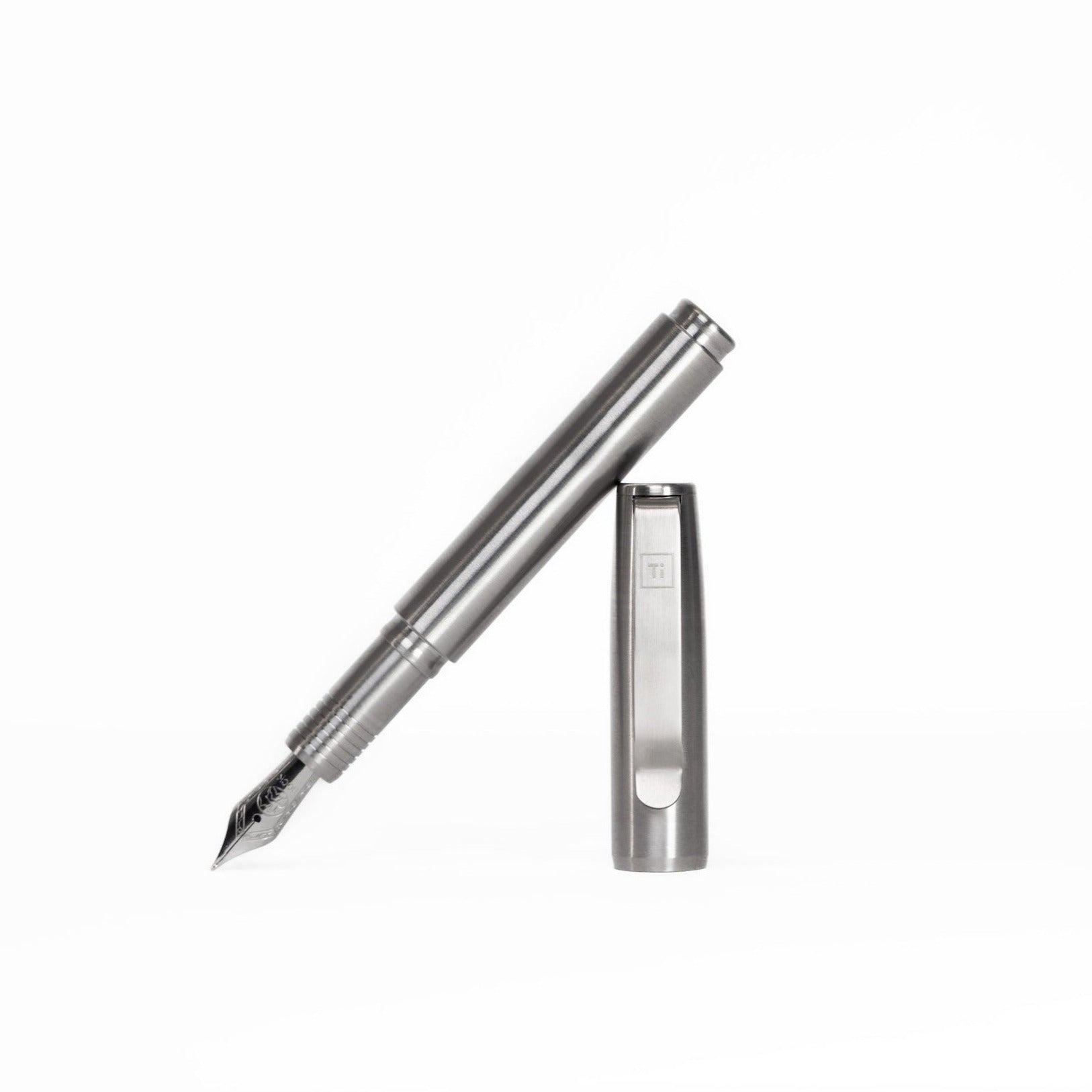 Discover the perfect everyday carry fountain pen designed for durability and style. Simple construction meets timeless design in this comfortable, pocket-friendly writing instrument that impresses with every stroke. Features a premium Bock 180 Extra Fine nib, deep carry pocket clip, and compatibility with international ink cartridges. Ink not included.