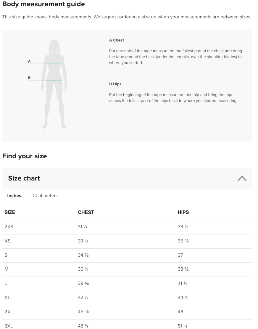| CHEST (inches) | HIPS (inches) | |