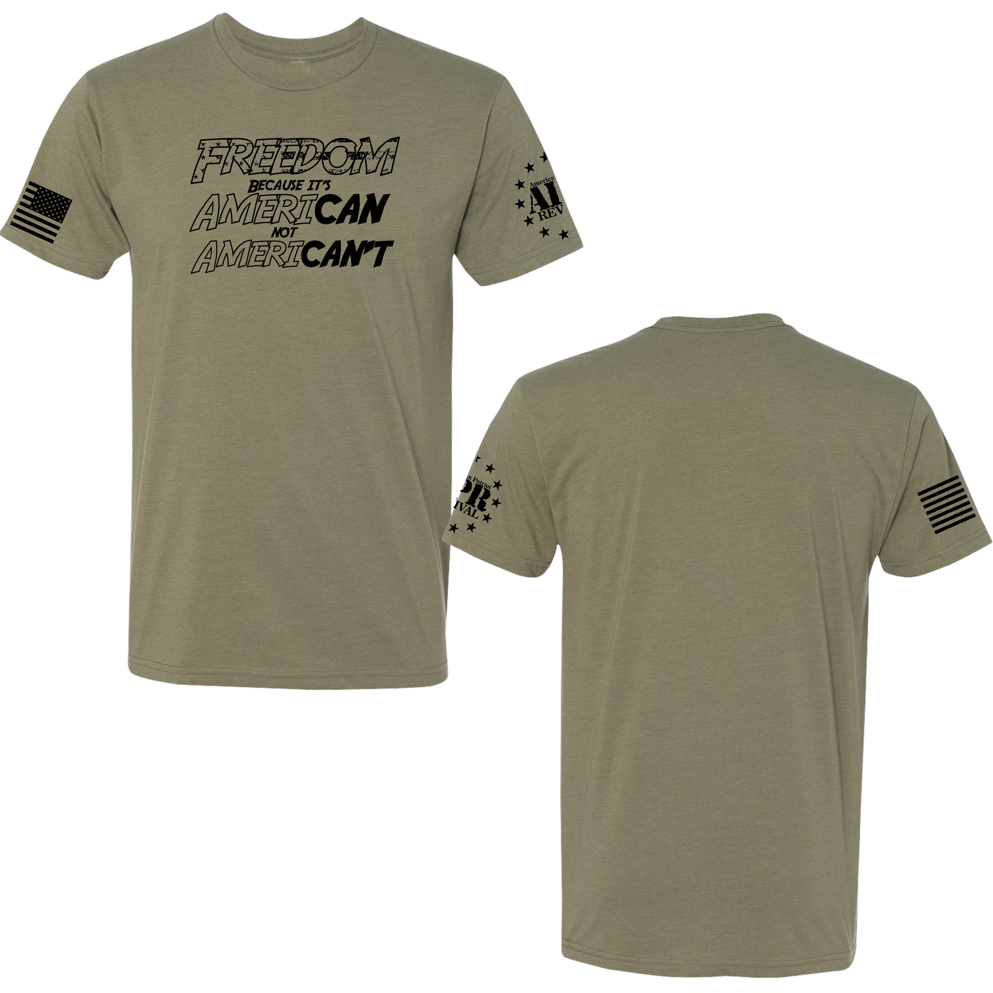 Introducing our inspiring and patriotic tee shirt that encapsulates the American spirit like no other - "Freedom, because it's AmeriCAN, not AmeriCAN'T." This bold and empowering design represents the unwavering can-do attitude that defines the United States of America.