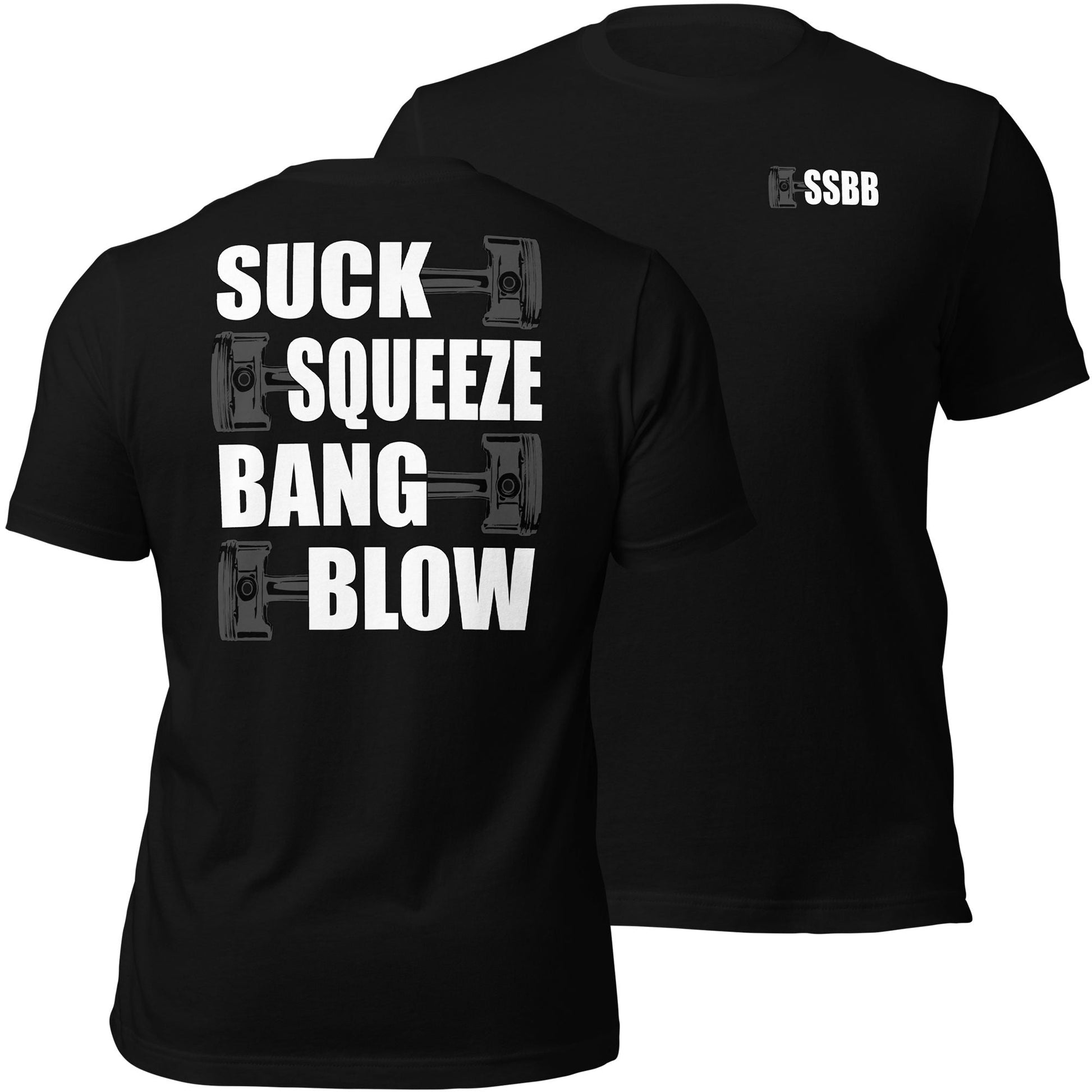 Funny Mechanic Shirt, Car Enthusiast Gift, Racing, or Racecar T-Shirt, Suck Squeeze Bang Blow Saying