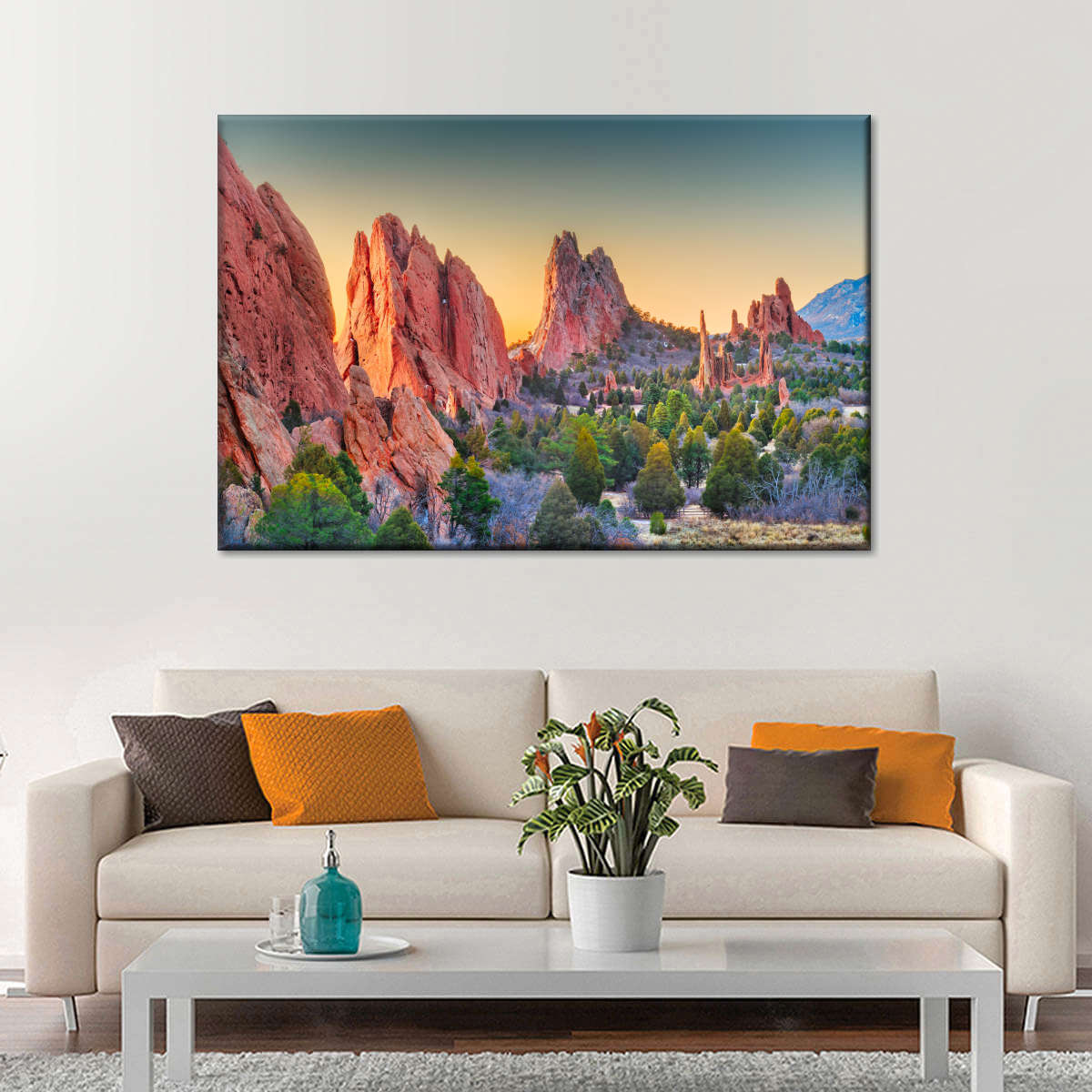 Garden Of The Gods Sunrise Wall Art will refresh your mind and soul whenever you stop and stare at it. This high-quality art print will complement any room in your home and soothe your senses with nature's beauty.