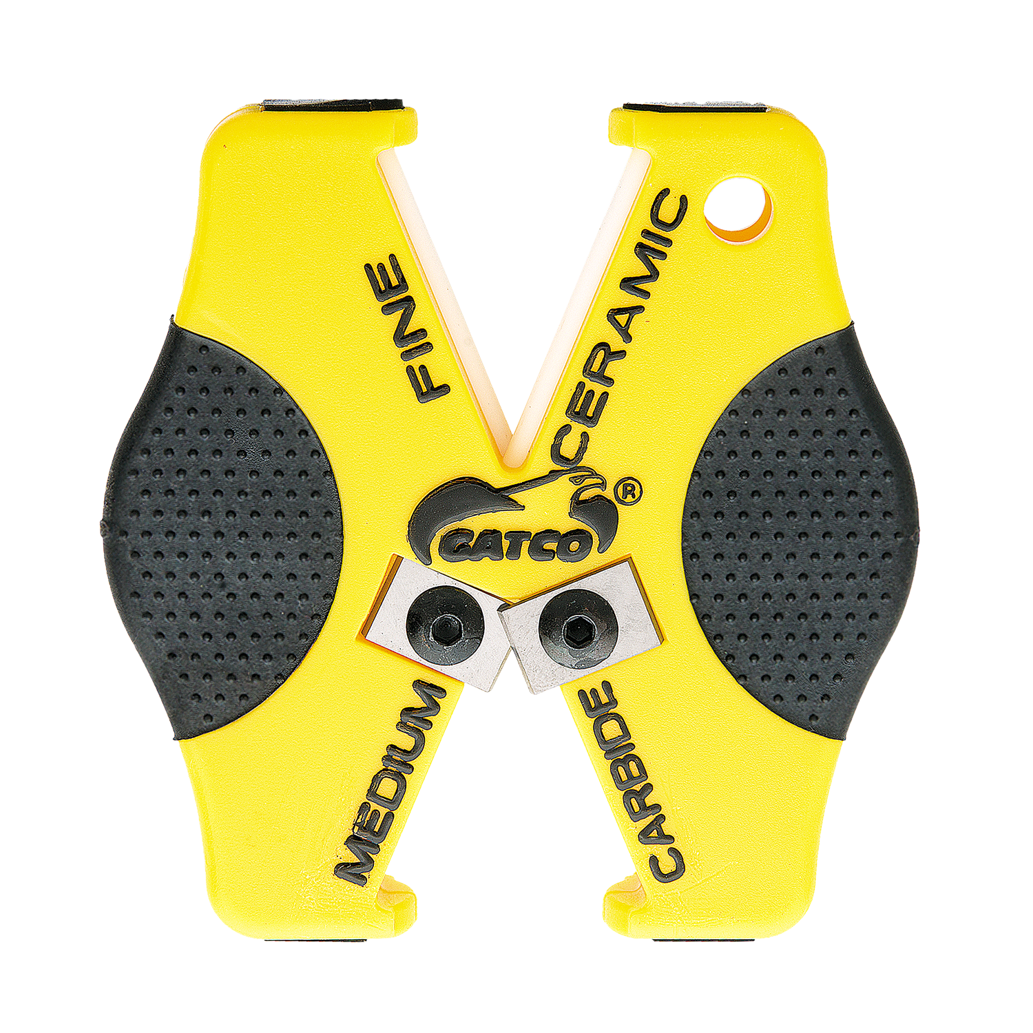 This unique sharpener combines the best features of our GATSTIX® ceramic sharpener and Edgemate® carbide sharpener. Two precision ground, tungsten carbide blades pre-set at 35°, quickly sharpen the dullest blades in four or five light strokes. The two fine ceramic rods at a pre-set angle, put the polished, final edge on your blade. The carbide and ceramic sharpening elements are set in an ABS Polymer frame with slip-resistant feet and slip-resistant gripping pads.