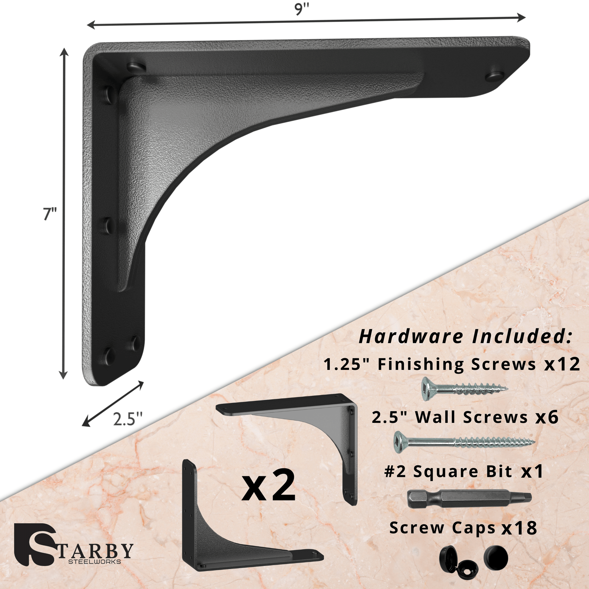 HEAVY DUTY; With Solid Hidden Welds these Low Profile Brackets Measure, 7" x (9",11",13", 15", 17") x 2.5" with a Max Load of 500 lb. 5 mm Thick Iron Industrial Shelves Brackets (2 COUNT)