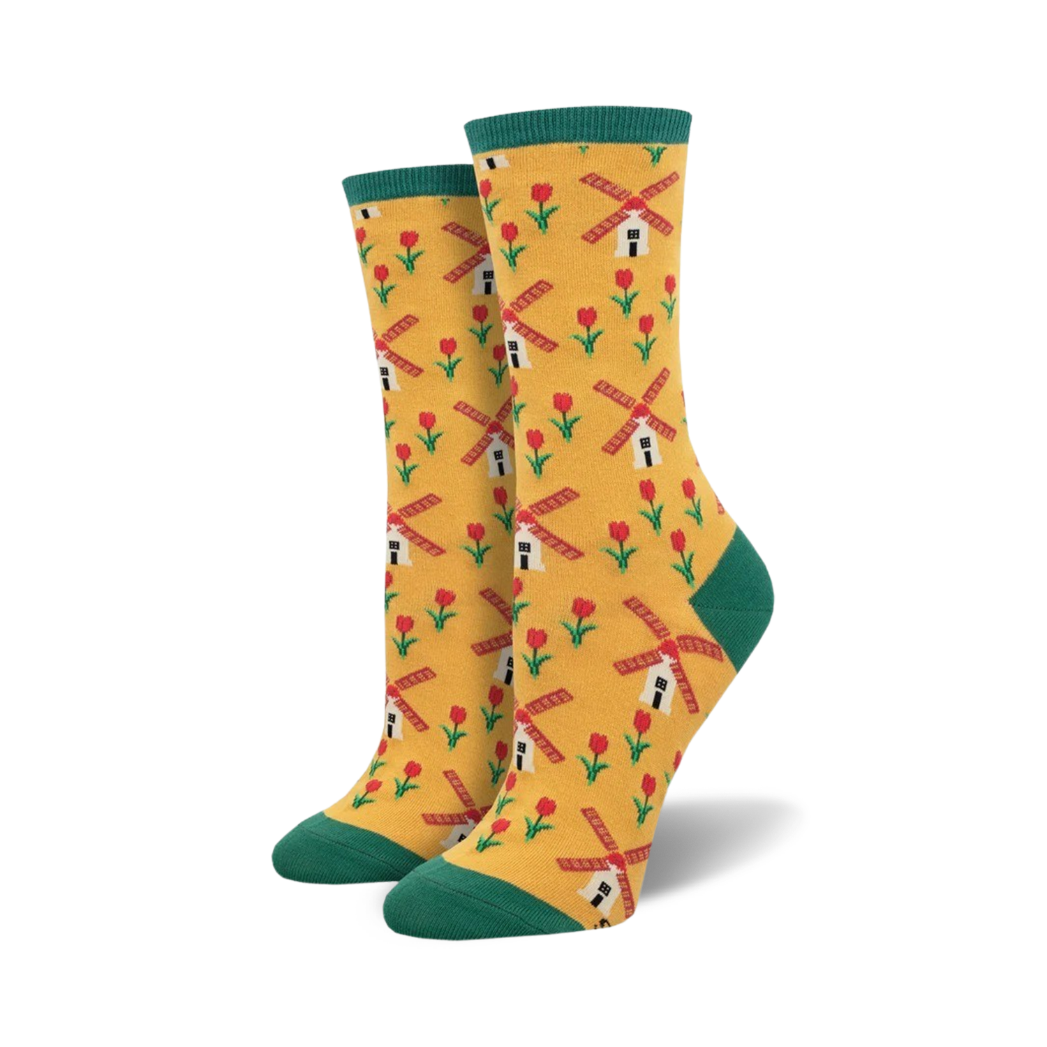 We all know to go Dutch on a bill, but now you can Dutch-ify your sock drawer with these fab women's crew length socks. With a mustard yellow backdrop and a pattern of red tulips and green windmills, these socks will bring a breath of fresh air to your footwear game. And who said socks can't have a green thumb? The top of these Going Dutch socks is a lush shade of Kelly green. So, break out your clogs and wooden shoes, you're going to the Netherlands, baby!