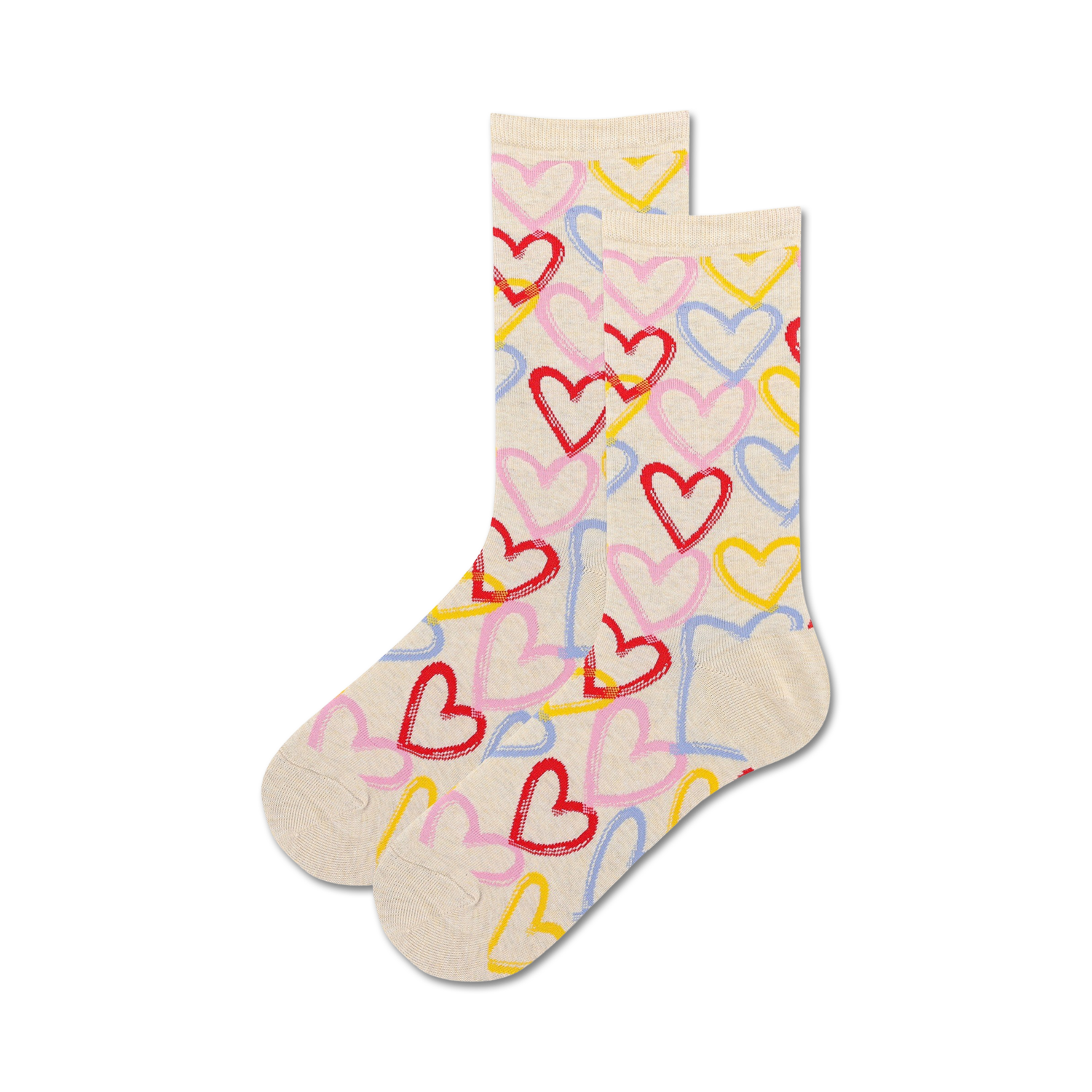These Graffiti Hearts socks are the heart of the party! With a vibrant pattern of spray-painted hearts in a rainbow of colors, these socks are sure to make your toes dance with their mix of fun and stylish flair. Perfect for bringing a pop of street art style to your everyday wear, these crew-length socks are ready to serve as a conversation starter and help you spread love wherever you go.