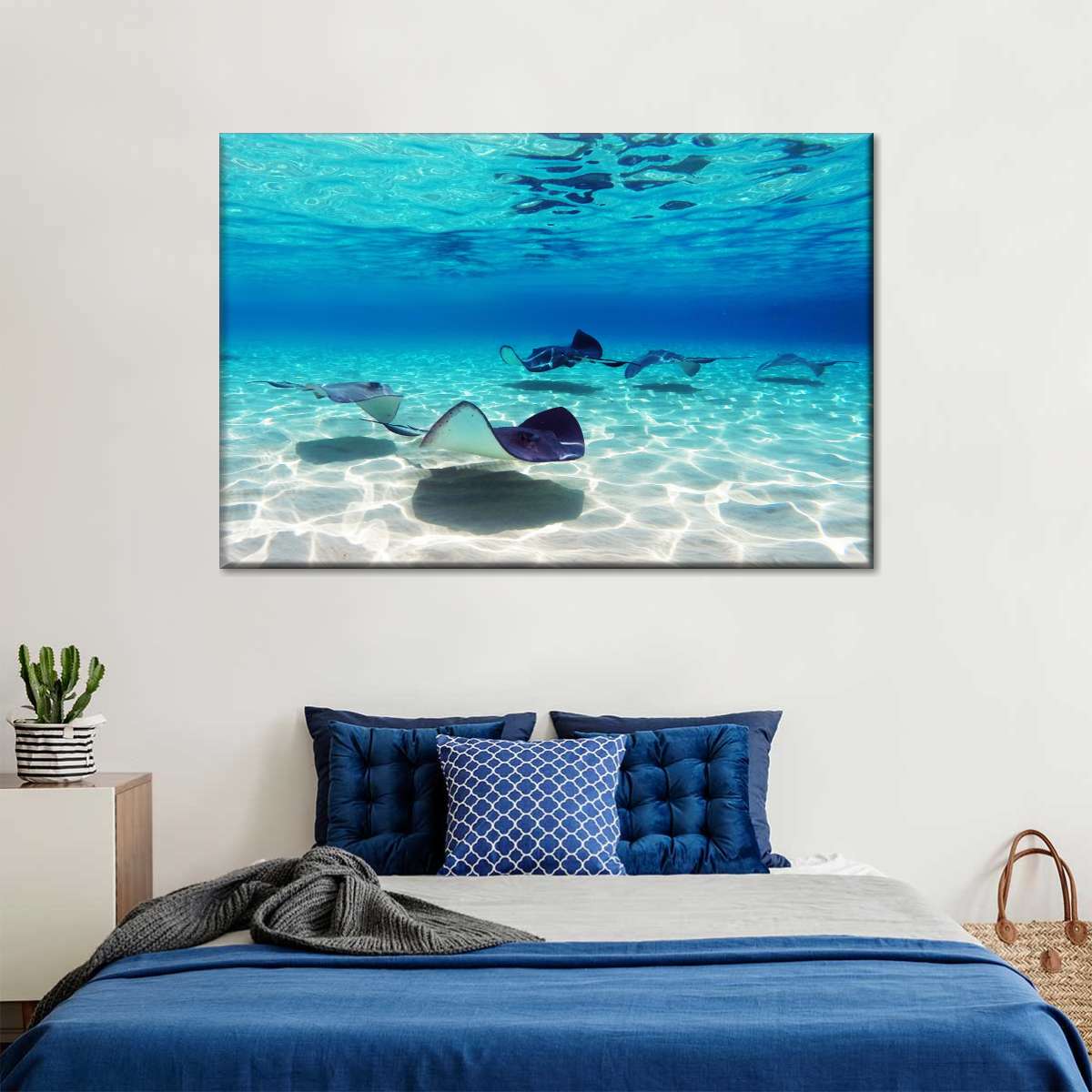 Grand Cayman Stingrays Wall Art will easily beautify any room. Bring this stunning art of your favorite animal into your home to set a positive tone to the entire space.