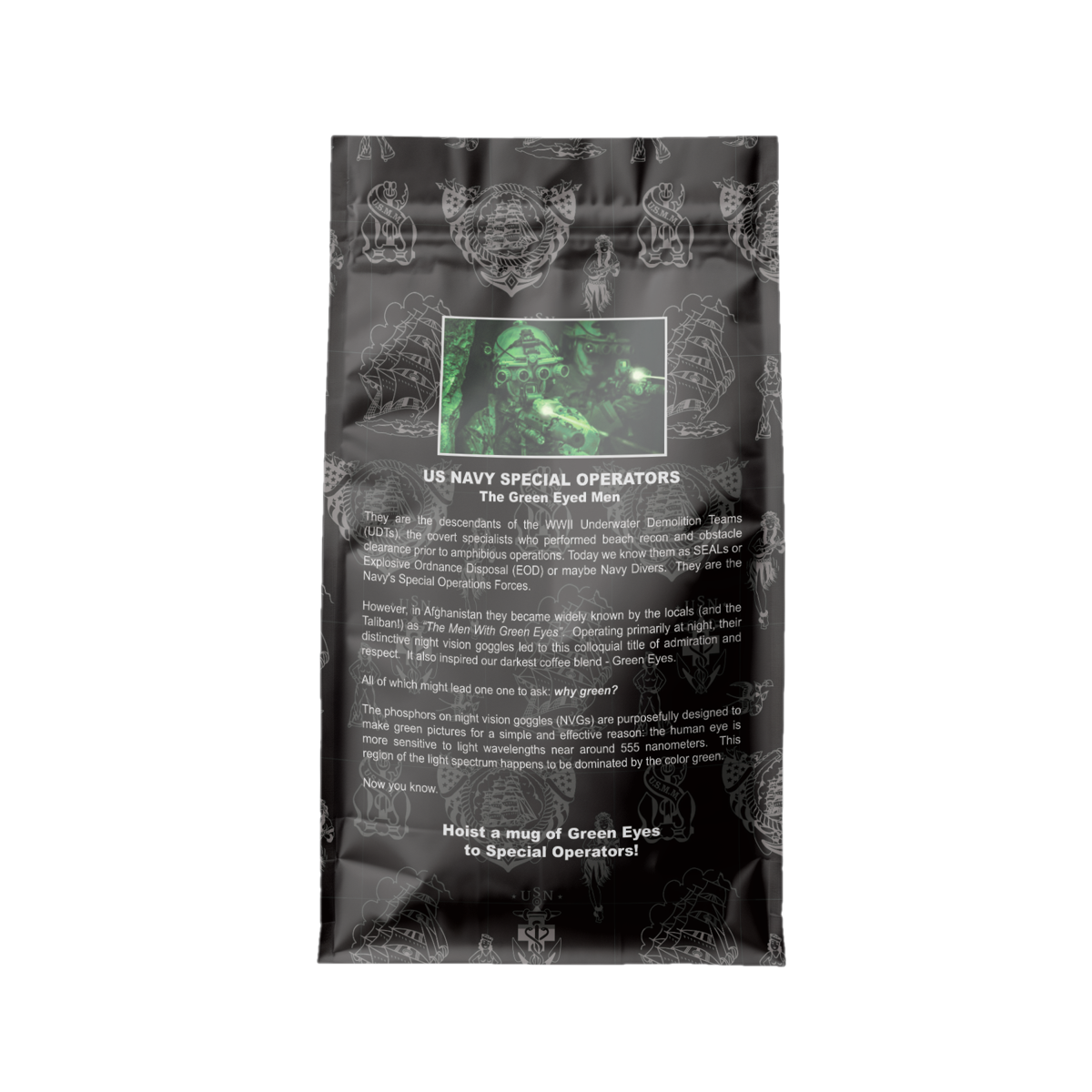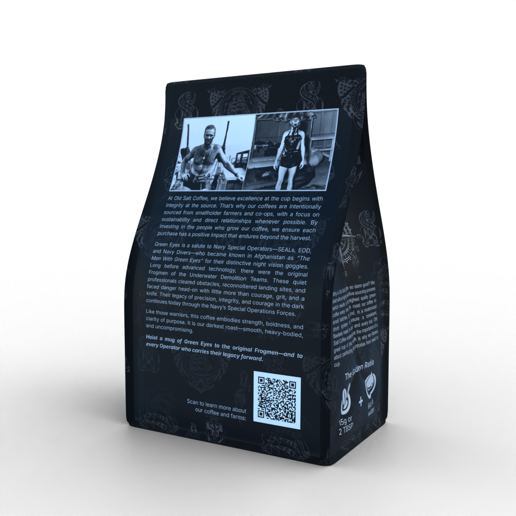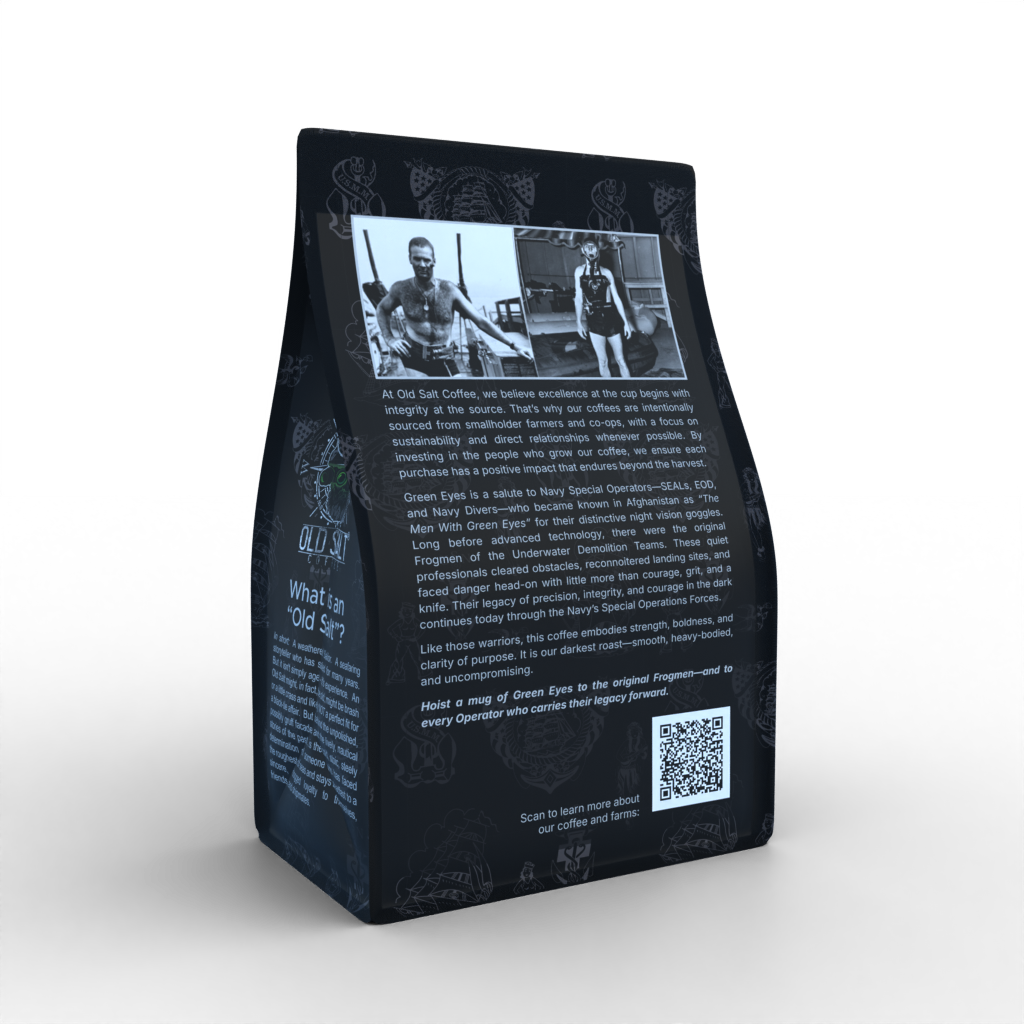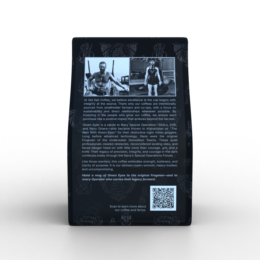 Whether you’re on a mission abroad or enjoying a moment of respite at home, Green Eyes coffee is your steadfast companion. With every sip, you honor the legacy of those who operate in the shadows, ensuring our freedom and security. Raise your mug to courage, to sacrifice, and to the indomitable spirit of the Green-Eyed Demons. Old Salt Coffee salutes their service and invites you to taste the difference in every cup of Green Eyes Blend—a blend that embodies tradition, craftsmanship, and a commitment to excellence. Experience Green Eyes and embark on a journey through flavor, heritage, and service. Embrace the suck, because true strength begins with a single sip.
