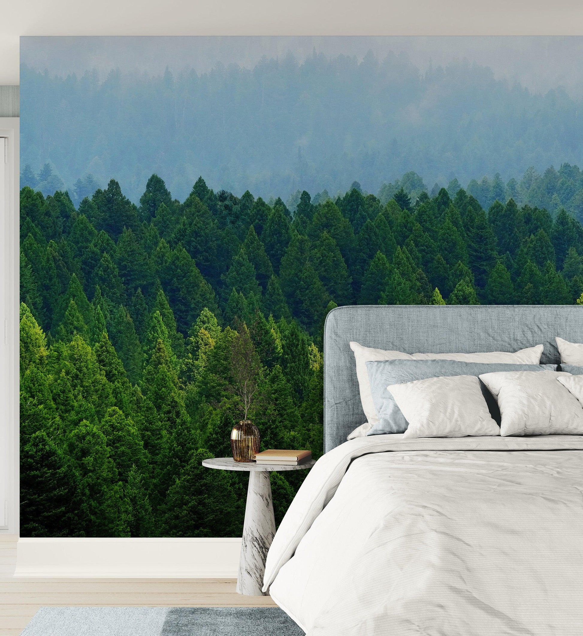 Transform your space with the breathtaking beauty of the Great Forest Mountain Range Wallpaper Mural. This stunning design features lush green forests blending seamlessly into towering mountain peaks, capturing the serenity and grandeur of nature. Perfect for creating a peaceful atmosphere, this mural brings the outdoors into your living room, bedroom, office, or meditation space.