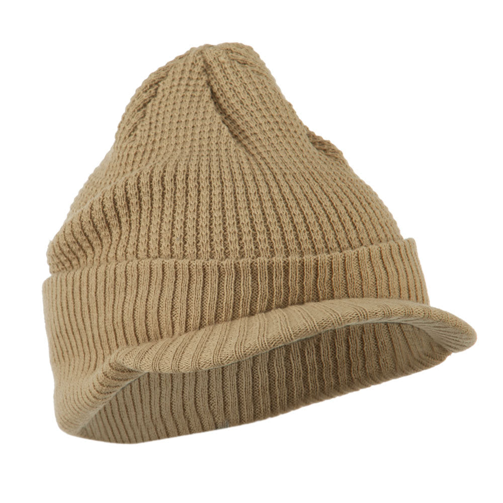 Grid Pattern Cuff Beanie with Visor