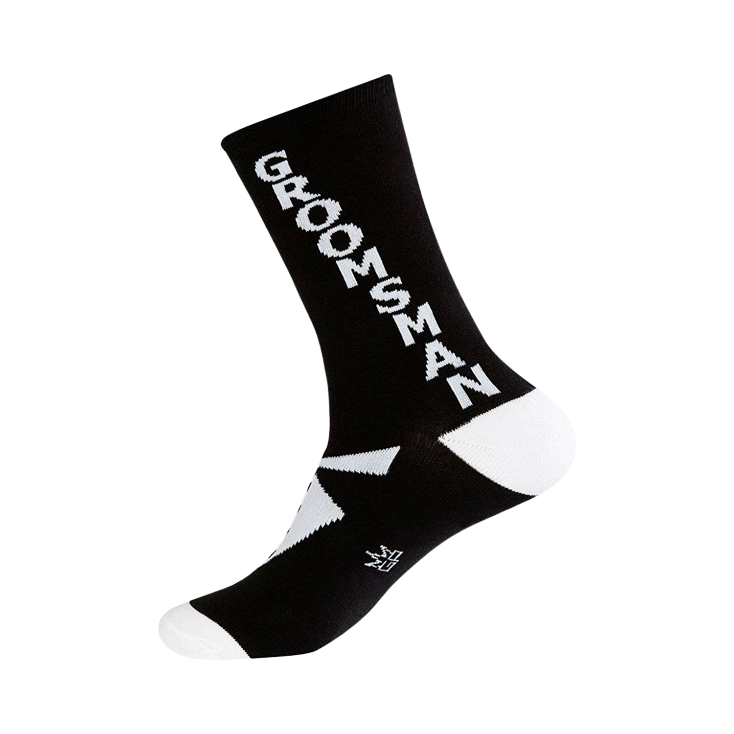 Show your groomsmen that you appreciate them as much as the best man. These fun men's novelty crew socks make the perfect gifts for your wedding entourage. Each cool pair features the word "GROOMSMAN" printed on the sides in white letters against a stylish black background. An awesome-looking tuxedo design is etched on the top of the socks.