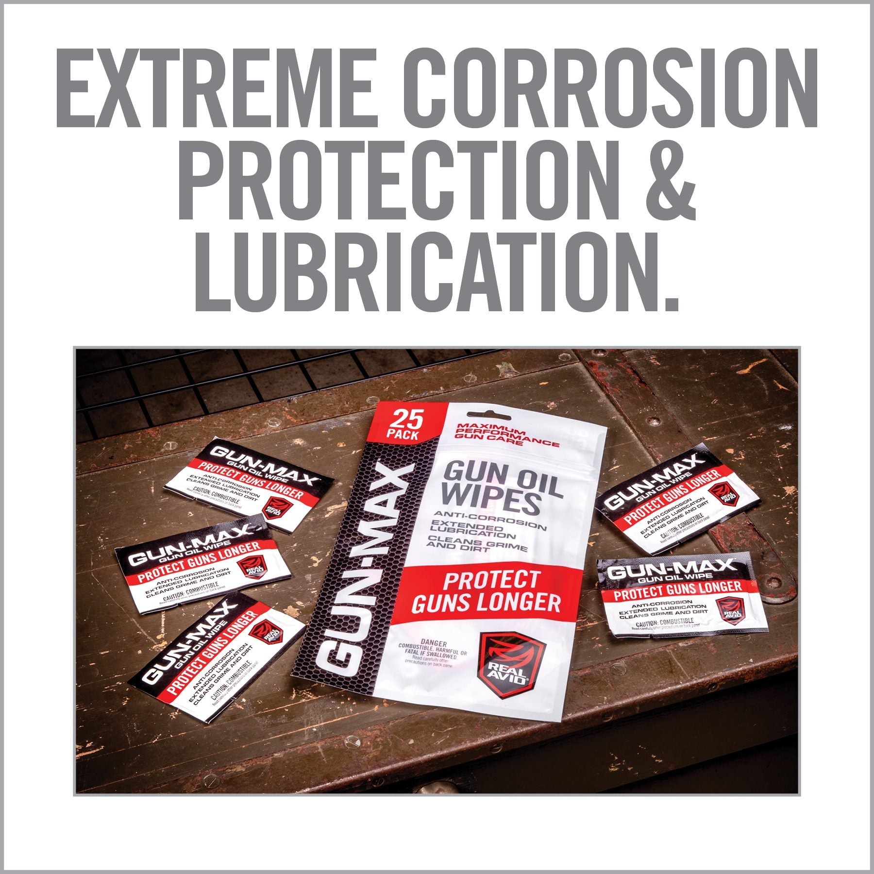 Pre-saturated with high-performance Gun-Max Gun Oil that ensures extreme, long-lasting protection against corrosion and long-lasting lubrication. Gun-Max was chemically engineered to excel in harsh, demanding environments. A strong corrosion inhibitor and rust protectant create an impenetrable moisture barrier and protect against the environment. The advanced lubricating compound does not freeze or sludge in cold temperatures and outlasts in heat and dust. Lubrication reduces friction and minimizes malfunctions of moving parts. Gun cleaning wipes will leave a thin, non-greasy coating and will help you avoid overlubricating Individually packaged, sealed in a compact pocket, the wipes are perfect for in-field use. It’s a go-to solution for hunters, for concealed carry, for travel, or for tactical and survival applications. Maintain your firearm lubricated and rust-free and always wipe it off with Gun-Max Gun Oil Wipes before storing.