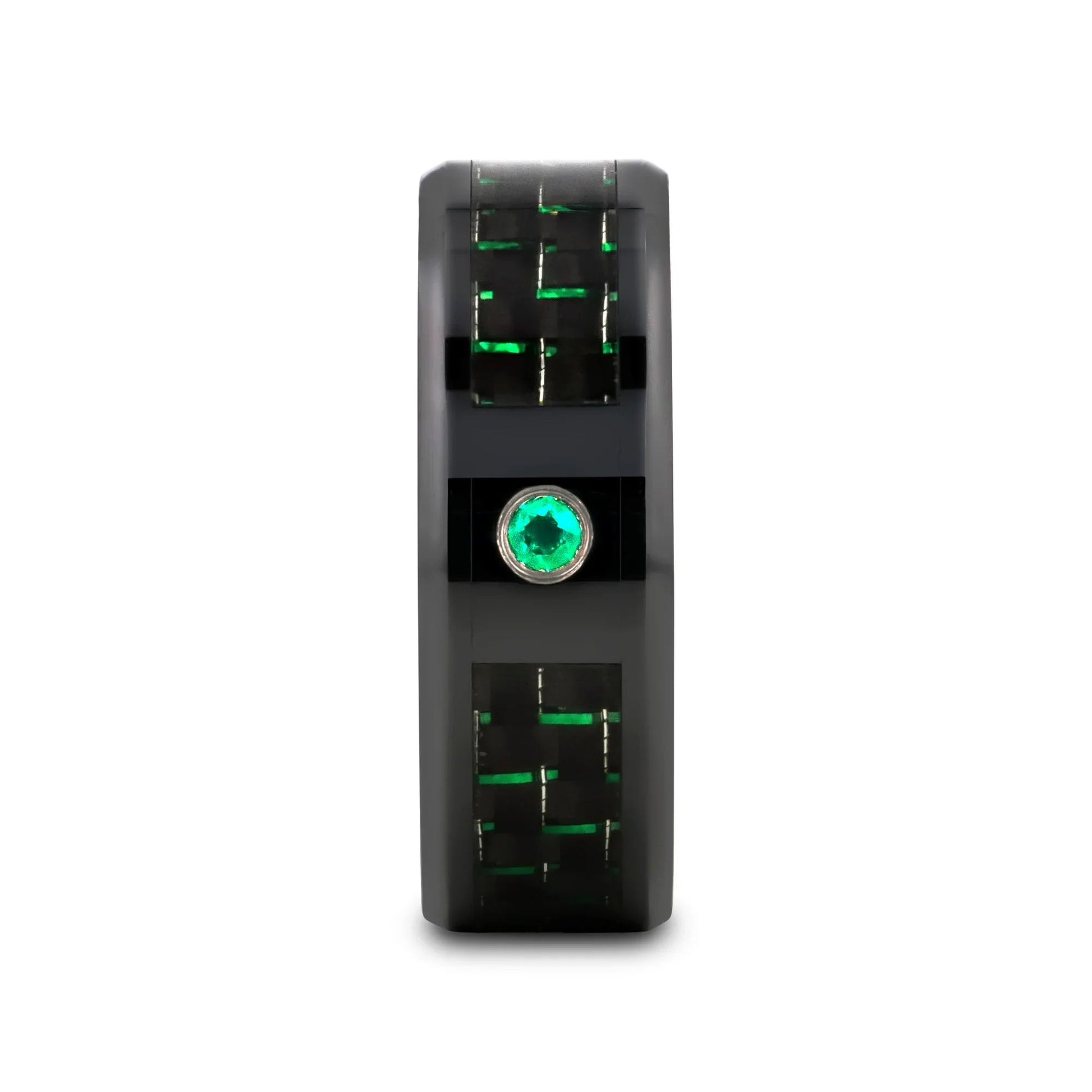 HADAR Black Ceramic Ring with Black and Green Carbon Fiber and Green Emerald Setting - 8mm