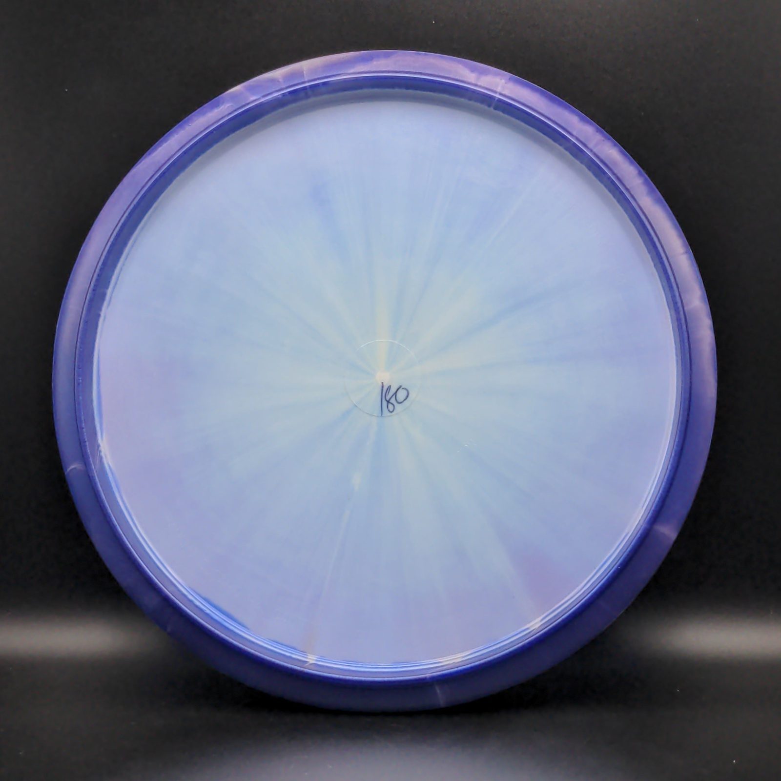 Halo Star is a decorative blend of Star plastic featuring a colorful halo design where the rim is a distinctly different color than the center plate of the disc. Halo discs are slightly more overstable to start than Star counterparts. The pearly rim is noticeably firmer than the Star flight plate - providing the disc with additional durability for a long lifetime of flight.