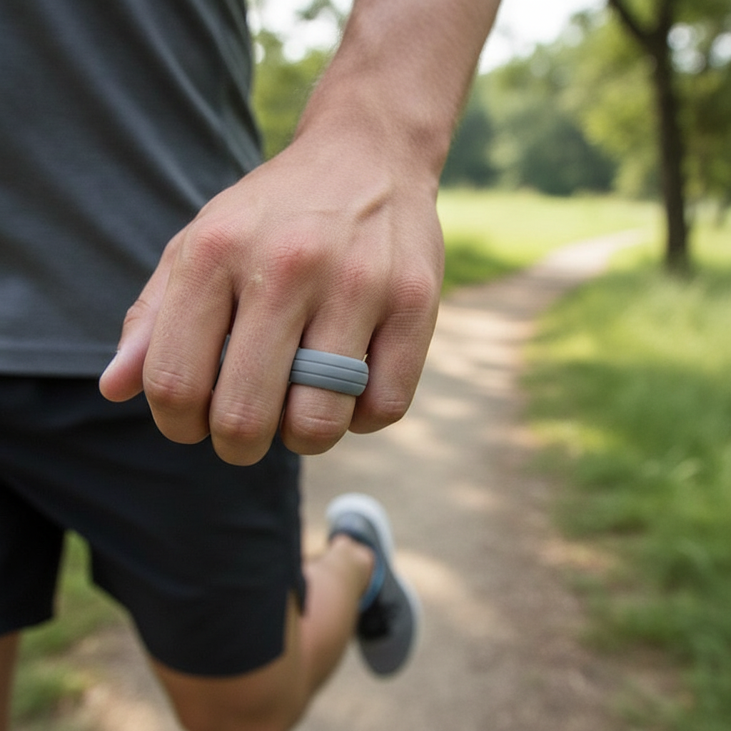 HAMMER Dual Groove Silicone Ring for Men and Women Grey Comfort Fit Hypoallergenic Thorsten - 8mm