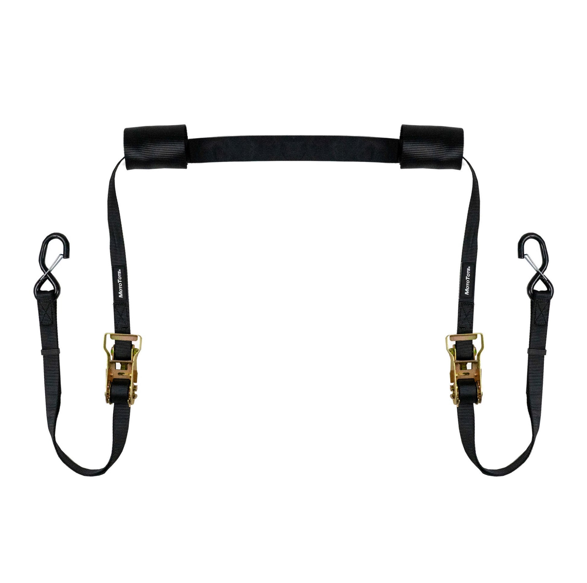 Handlebar cuff tie-down system with a ratcheting lever connects to handlebar grips up to 32" and has a 1,390 lb. working load limit.