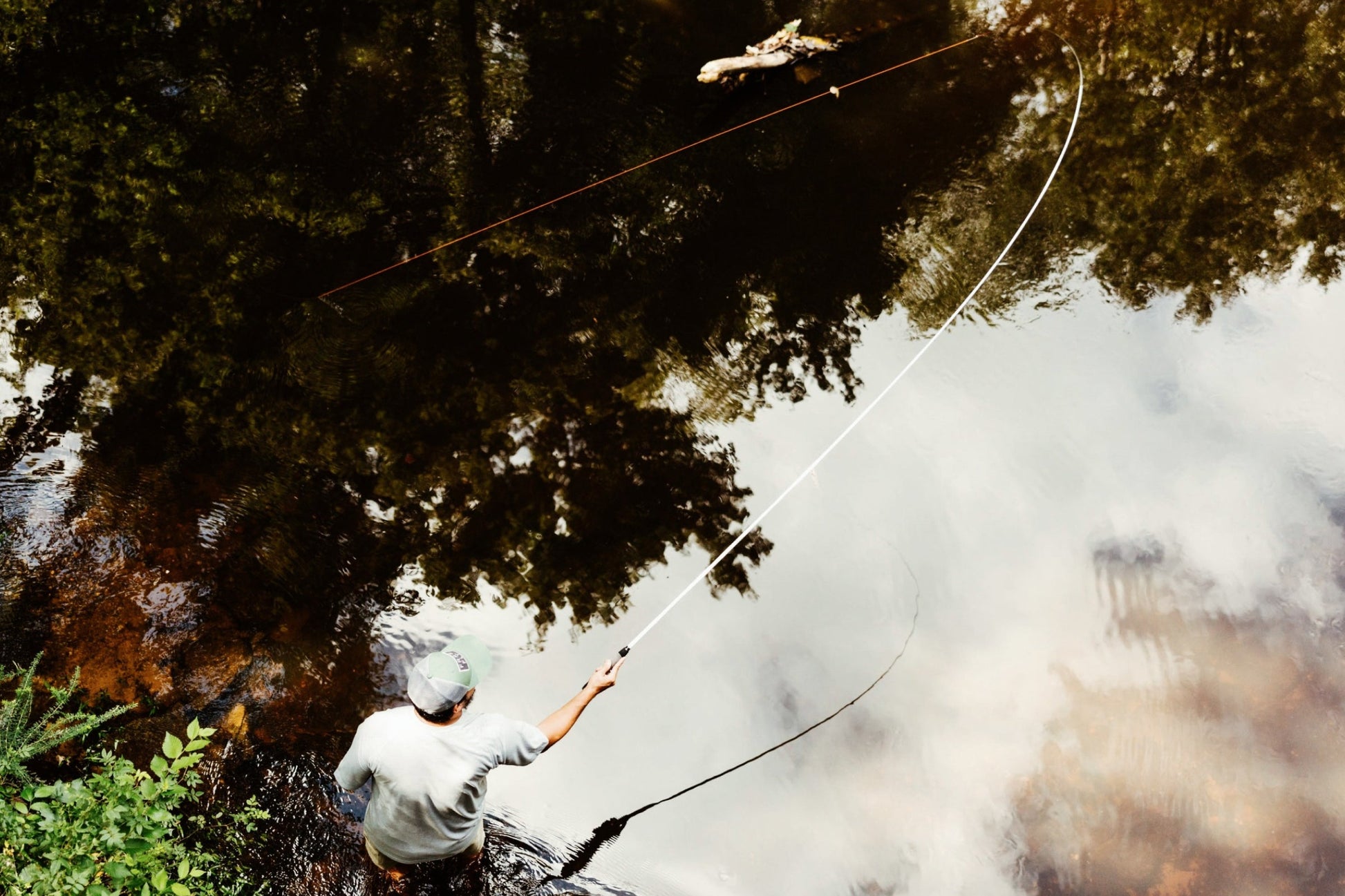 We decided to make this rod white, a unique color in our lineup. The idea was to have a rod that will blend in well with open skies above. A black rod does a good job blending in with canopy, but its movement tends to stand out when fishing ponds and open meadow streams. The thin and less visible tip sections of the rod are matte black.