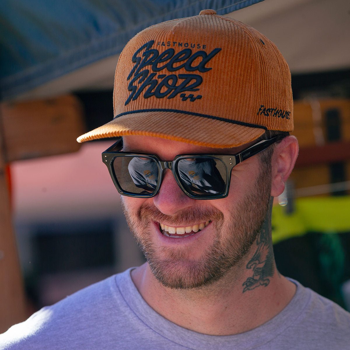 Inspired by the hats your grandpa used to wear, the Haste Hat is a deep-profile, structured snapback crafted from corduroy-style material. It features embroidered “Speed Shop” artwork, custom interior and exterior trims, and a contrast underbrim.