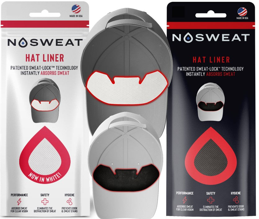 NoSweat® is a disposable moisture-wicking performance hat liner. Our patented SweatLock™ Technology is engineered to instantly absorb sweat. NoSweat® is made with hypoallergenic materials that are thin, soft, and lightweight.