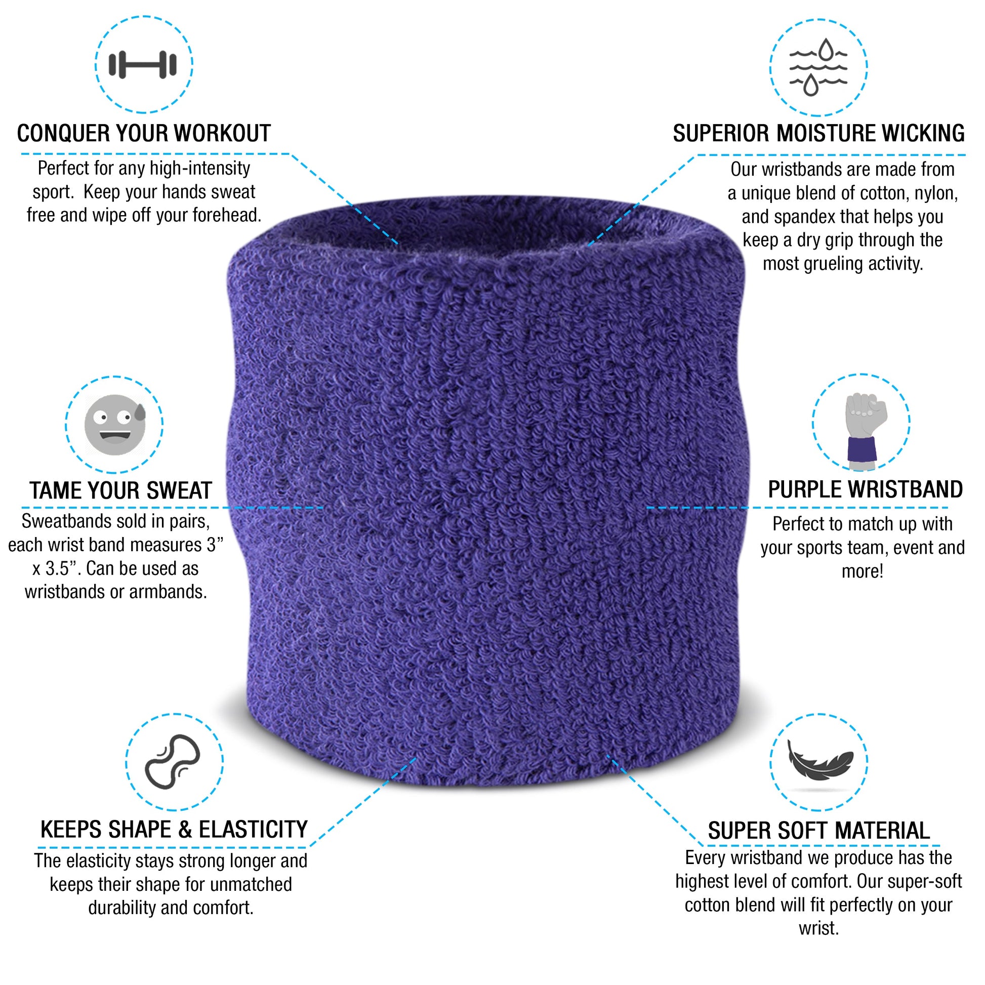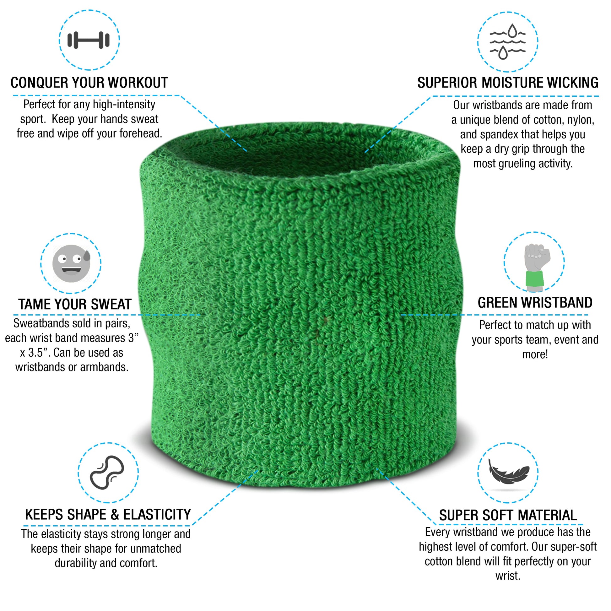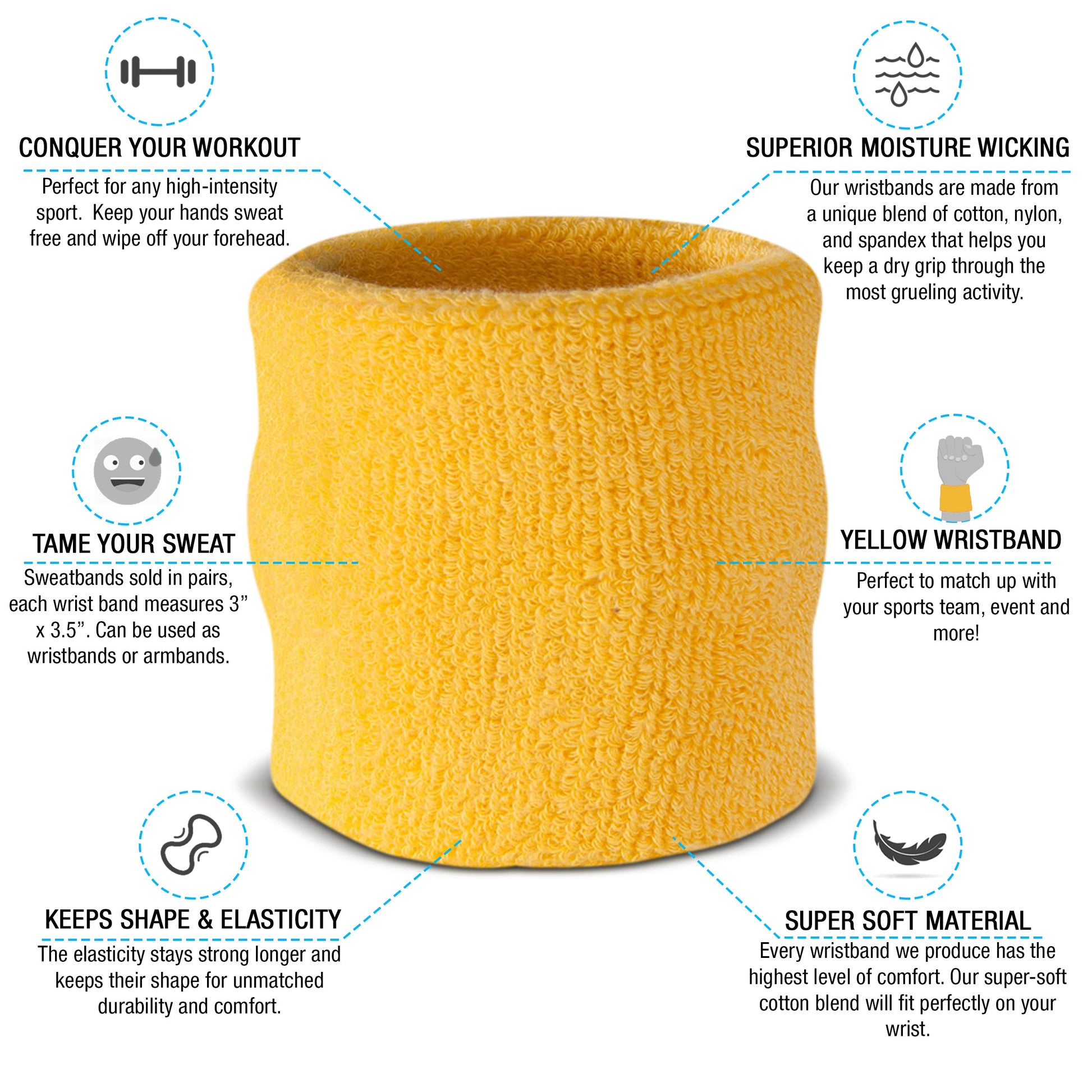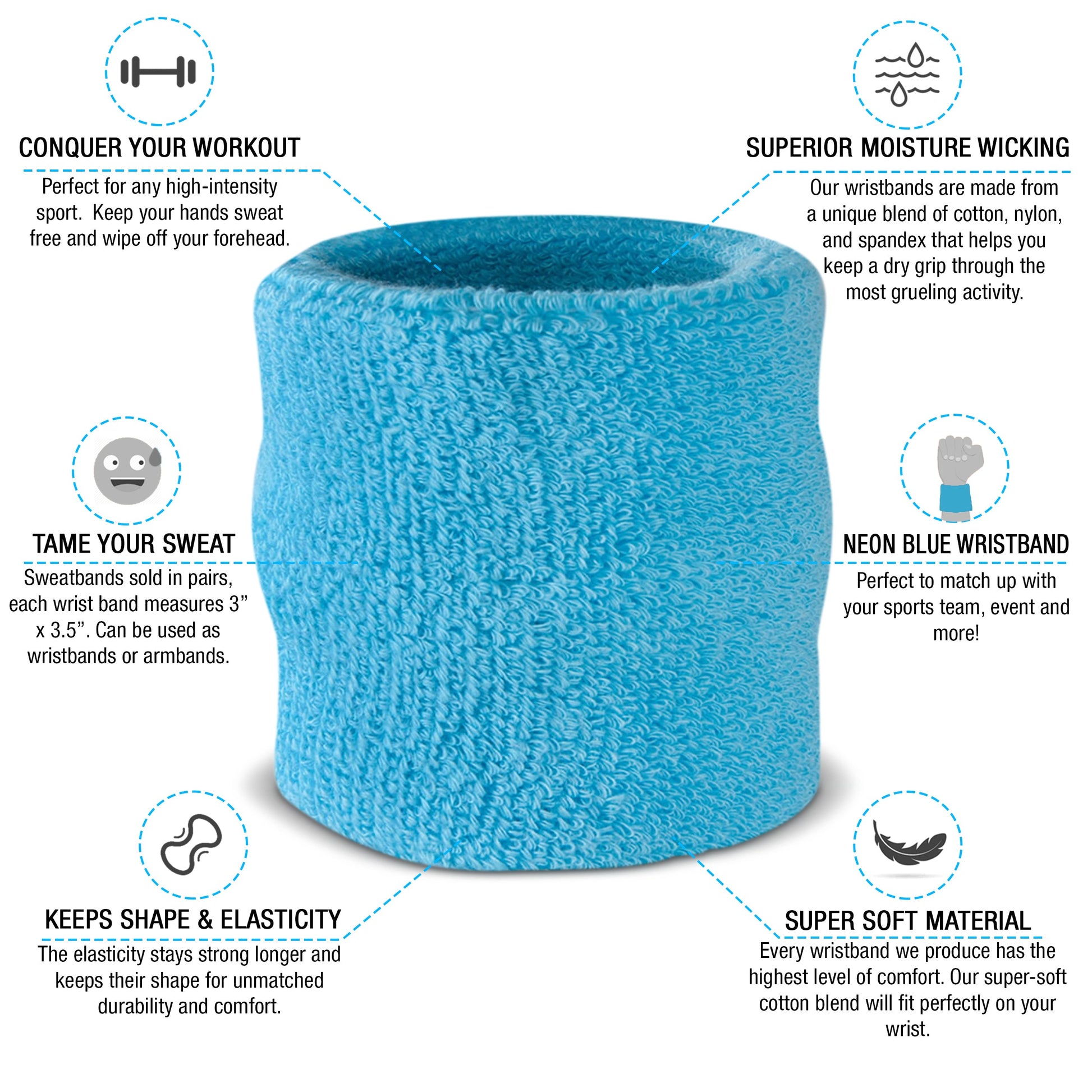 - Available in 12 Different Colors - This is one of the most popular sweatband sets we have to offer. The set comes with 1 headband and 2 wristbands. If you need to match these up with your jersey, don't sweat it. The sweatband set is available in black, white, blue, pink, orange, yellow, red, green, grey, purple, neons and more!