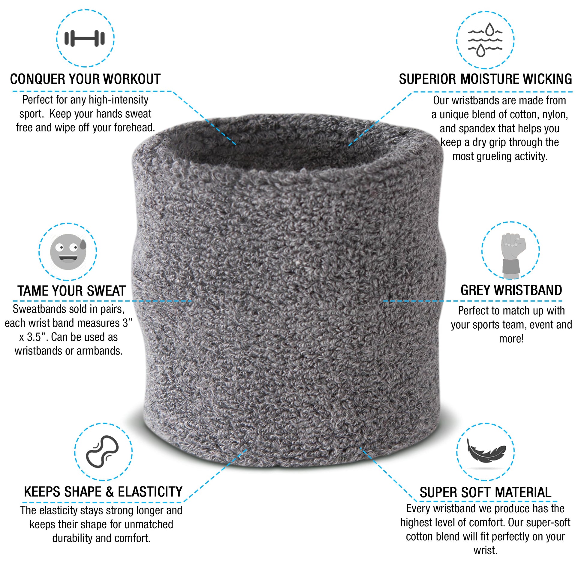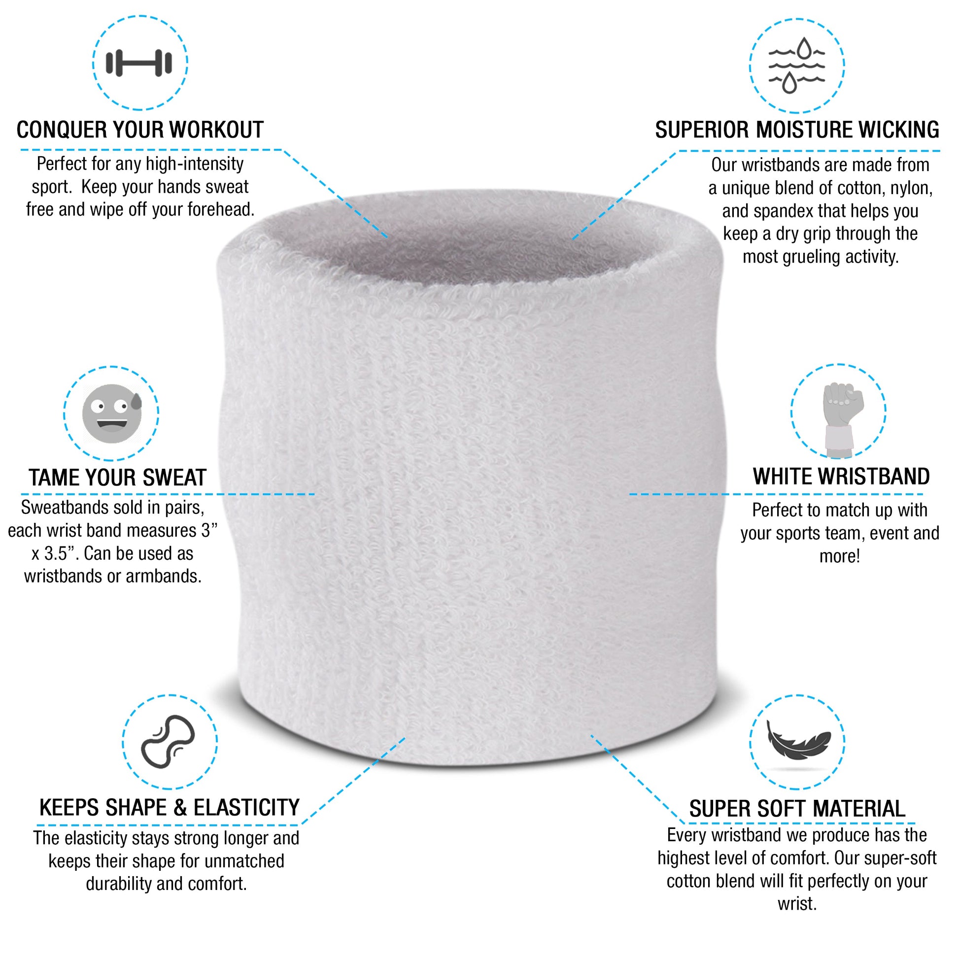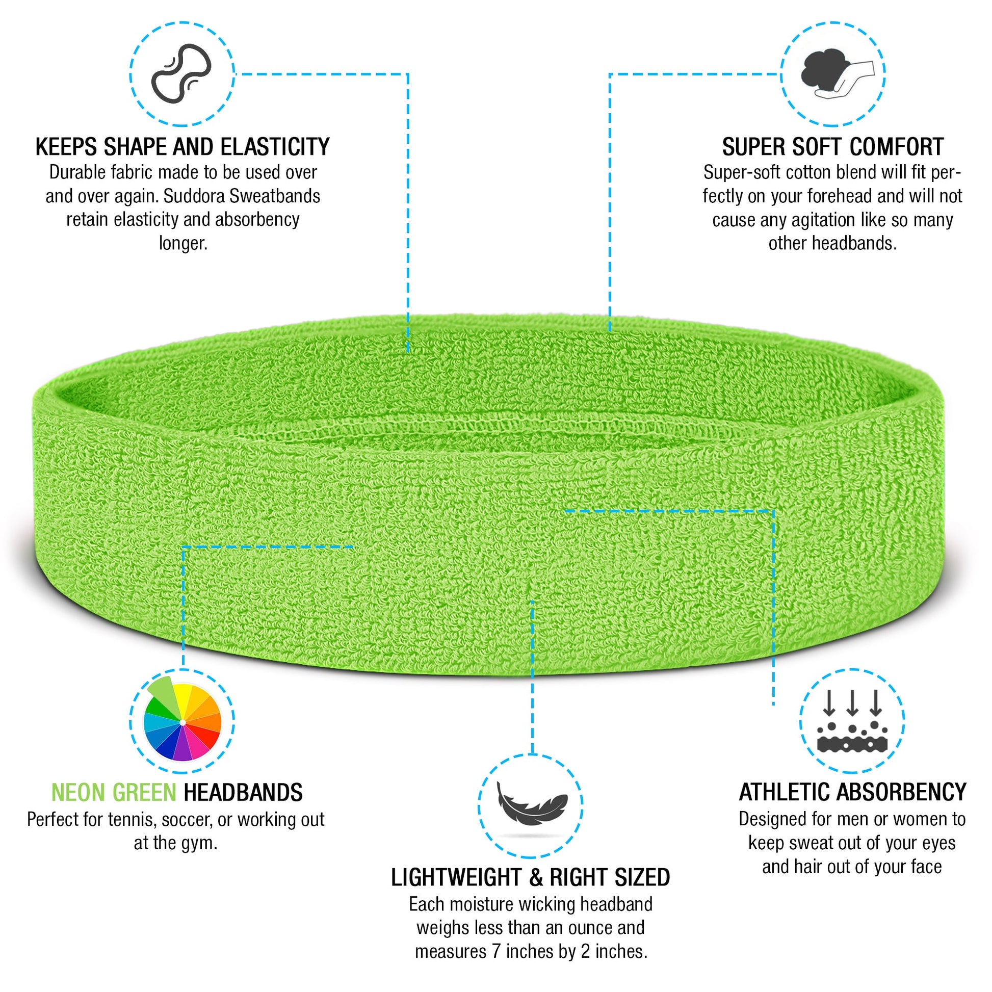 - Package comes with 1 Headband ( 7 x 2") and 2 Wristbands (2.75" X 3"). We also have a child-size, ideal for kids age 5 and under.