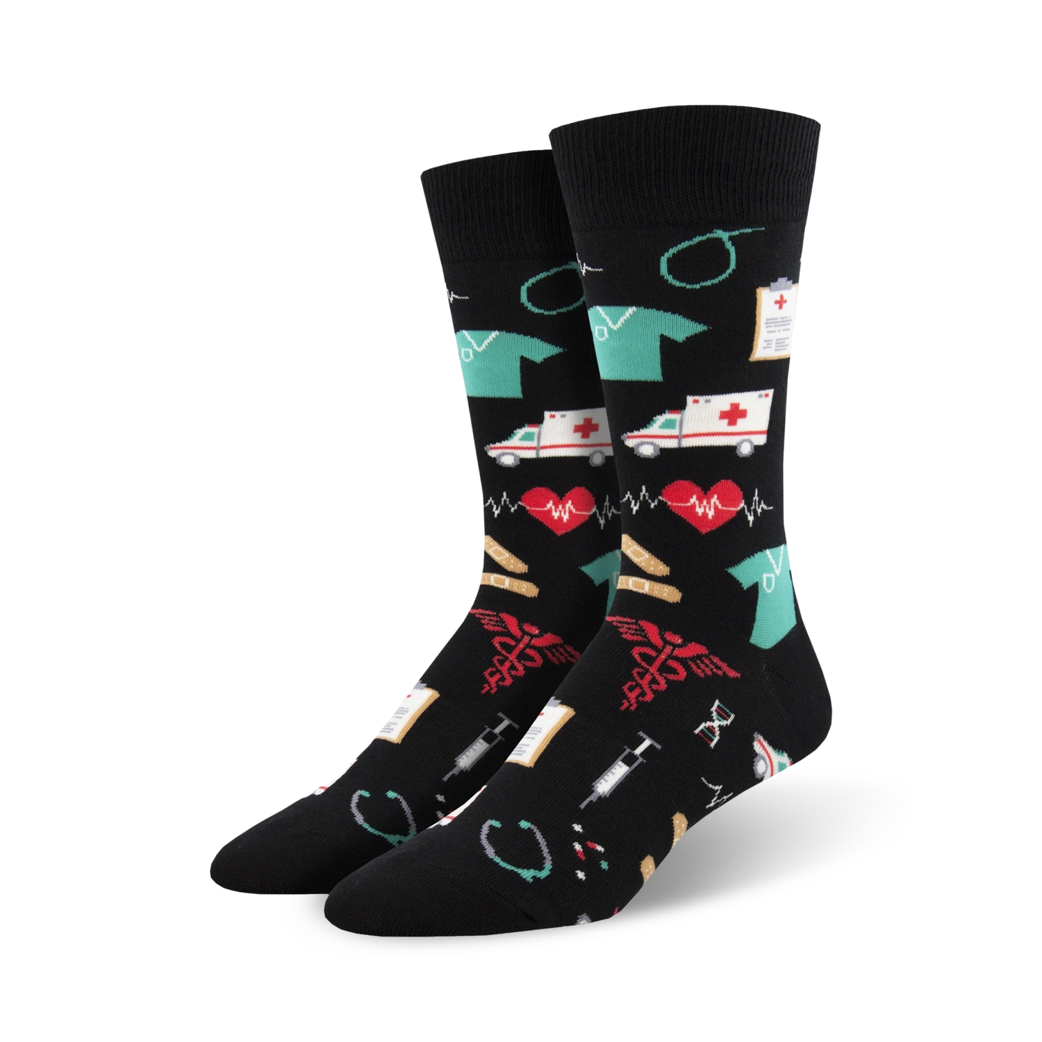 Got a case of the doctor socks? Good news! Our Healthcare Heroes socks are guaranteed to cure your boring sock syndrome. Featuring patterns of hearts, EKGs, pills, bandages, and syringes, these socks will liven up your scrubs in a heartbeat. Plus, they're made with high-quality materials that will keep your feet feeling healthy and strong. So go ahead, show your patients some sole and pick up a pair of Healthcare Heroes socks today!