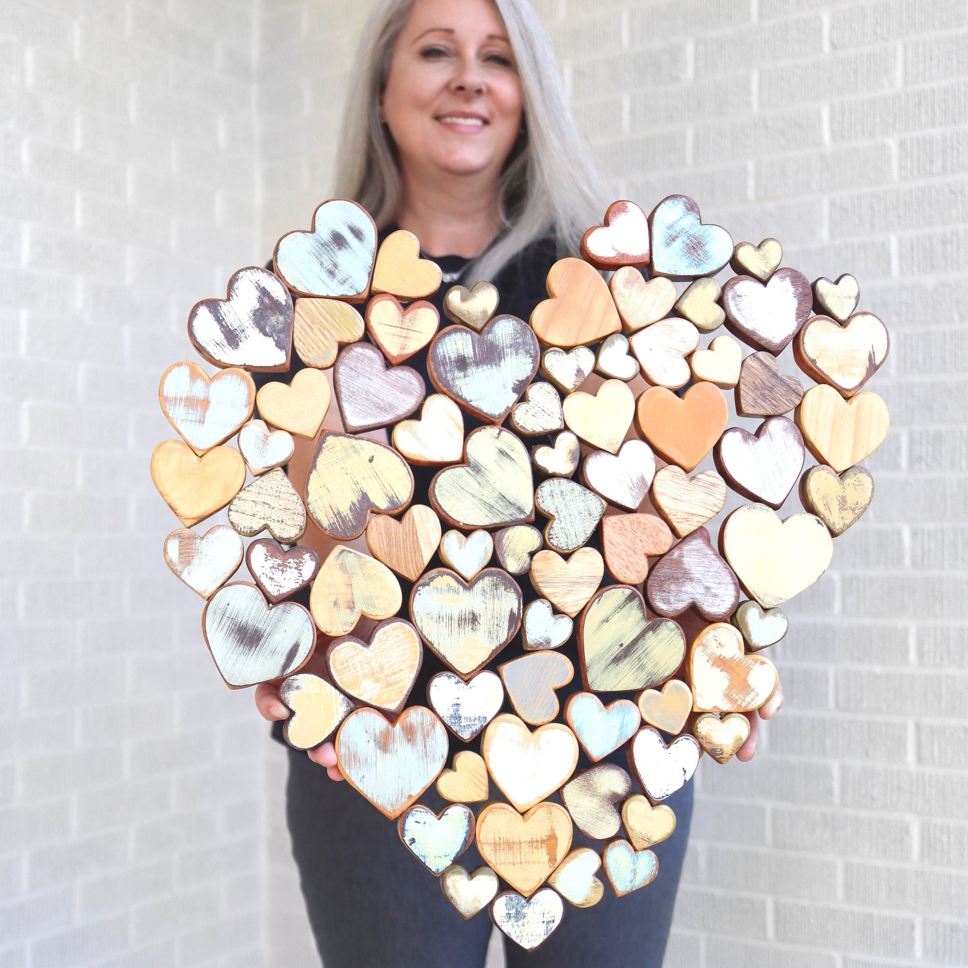 These Beautiful Heart Mosaics are a fantastic way to bring a little love into your home! These striking art pieces bring small wooden hearts together to create something bigger and tell a story of love and unity.