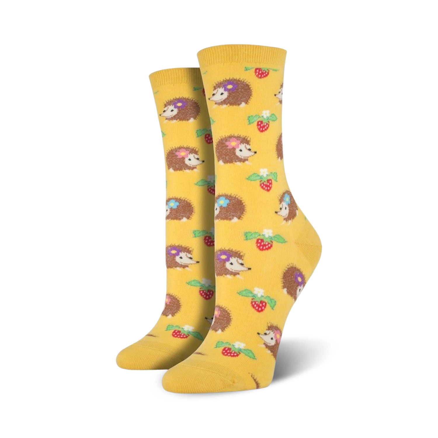 For days when you really want, or realllllly need, to pretend you're much more innocent than you truly are, these cute socks have just enough to make it look natural without going overboard. Sweet little hedgehogs, with tart little berries, brings you halfway to a picnic in the park. All you need now is to match these cool socks with some gingham.