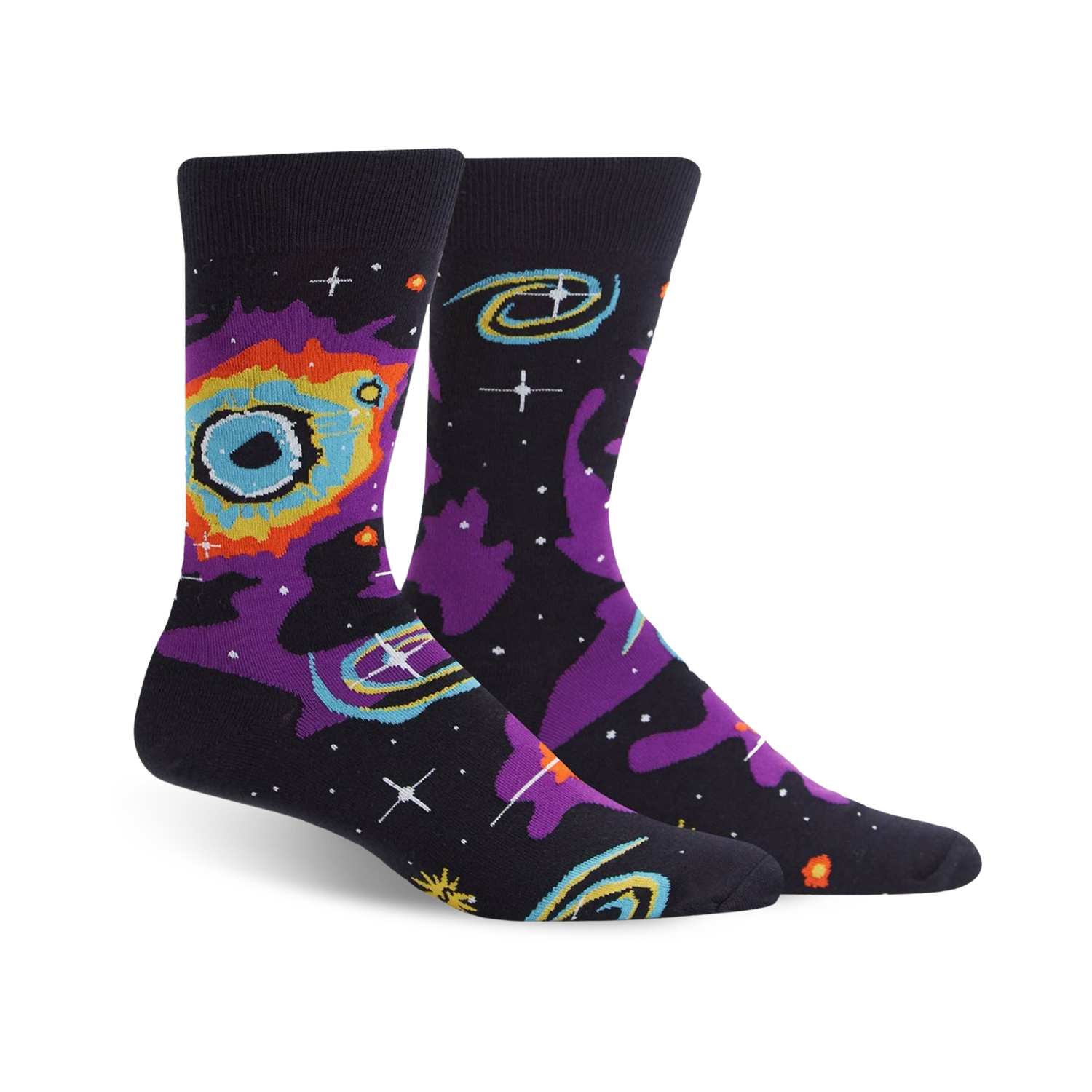 Blast off into a cosmic adventure with our Helix Nebula socks! These socks are the perfect fusion of space-age style and celestial comfort, featuring a mesmerizing pattern of purple and blue galaxies, twinkling stars, and far-out planets. Whether you're a stargazer, a sci-fi geek, or simply a fan of funky footwear, these socks will transport your feet to another dimension. So, put on a pair, grab your telescope, and let the cosmic journey begin!