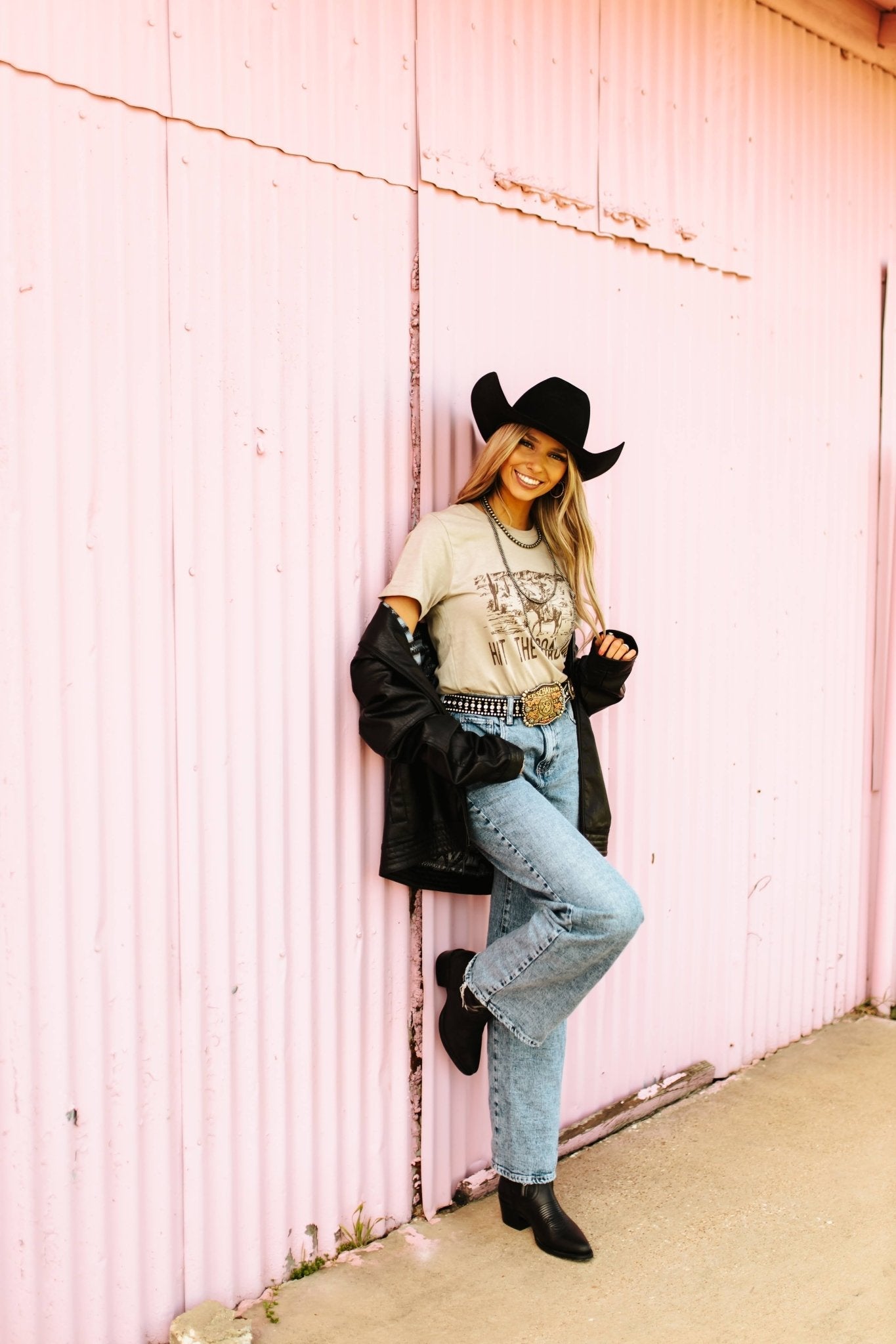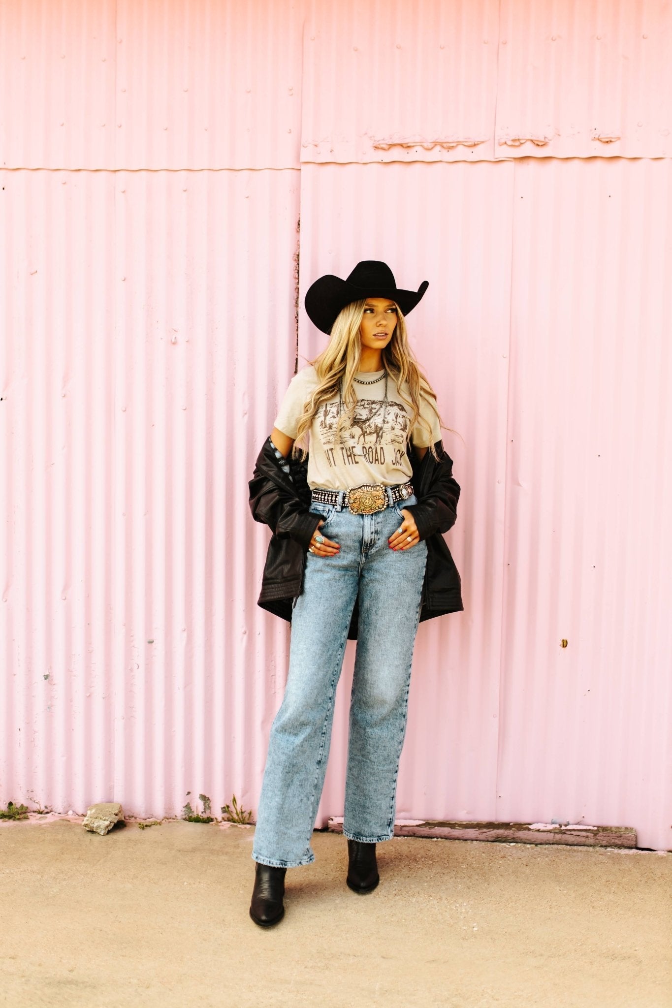 This sassy graphic tee channels the iconic Ray Charles song with a playful twist. Featuring a lone rider in a desert scene, it's perfect for anyone who craves adventure, independence, or a good old-fashioned fresh start. Let this tee be your companion for your next adventure, big or small.