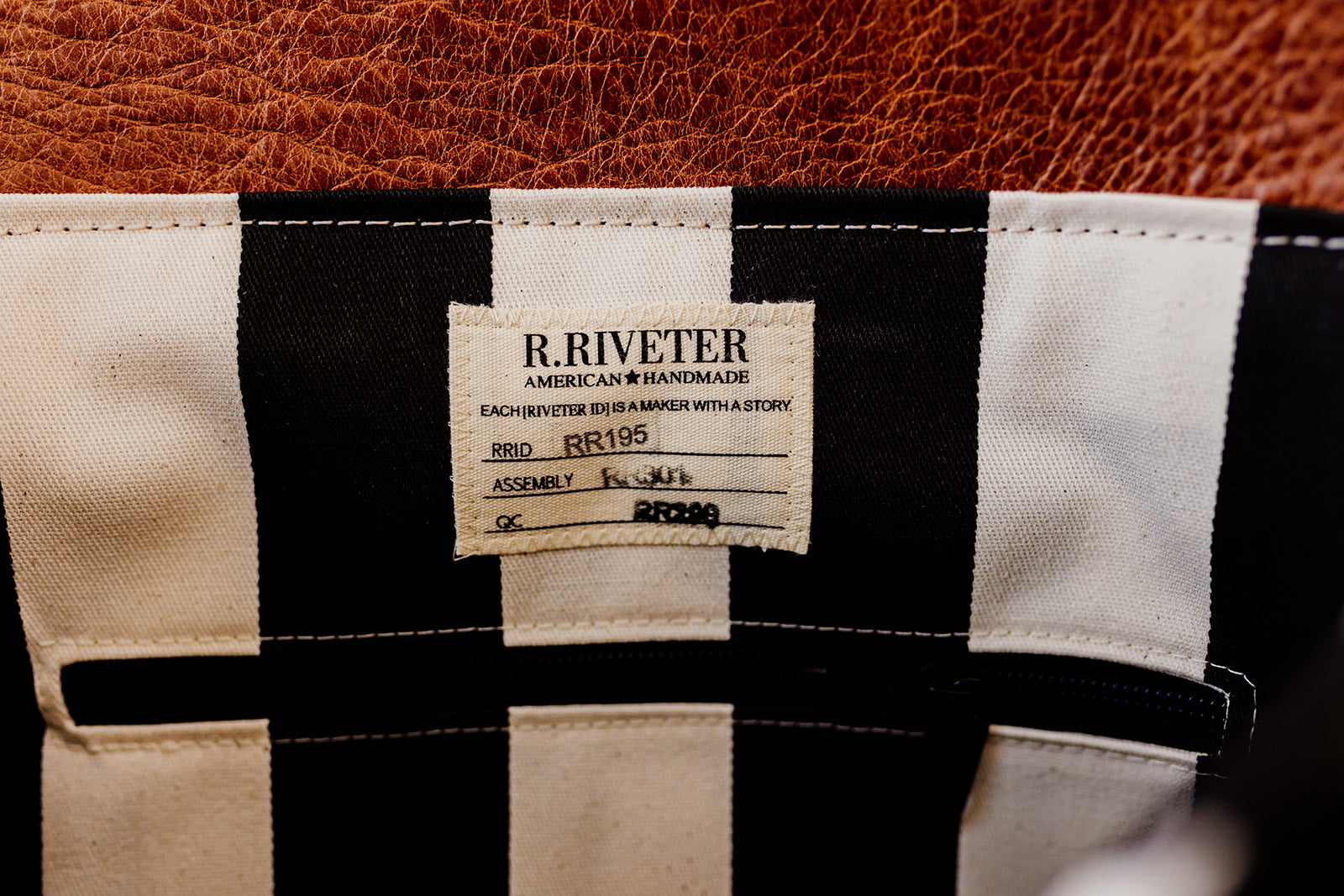 Each R.Riveter handbag takes a journey across the country before arriving at your doorstep. Components are crafted by independent military spouses in their homes around the nation, and shipped to R.Riveter's FabShop to be assembled into a one-of-a-kind product.