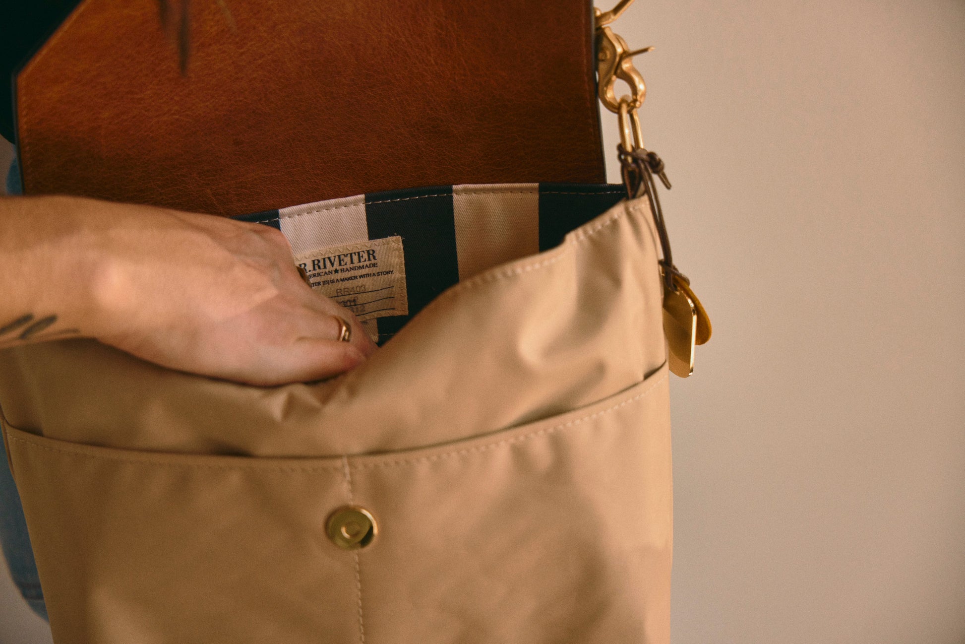 Each R.Riveter handbag takes a journey across the country before arriving at your doorstep. Components are crafted by independent military spouses in their homes around the nation, and shipped to R.Riveter's FabShop to be assembled into a one-of-a-kind product.