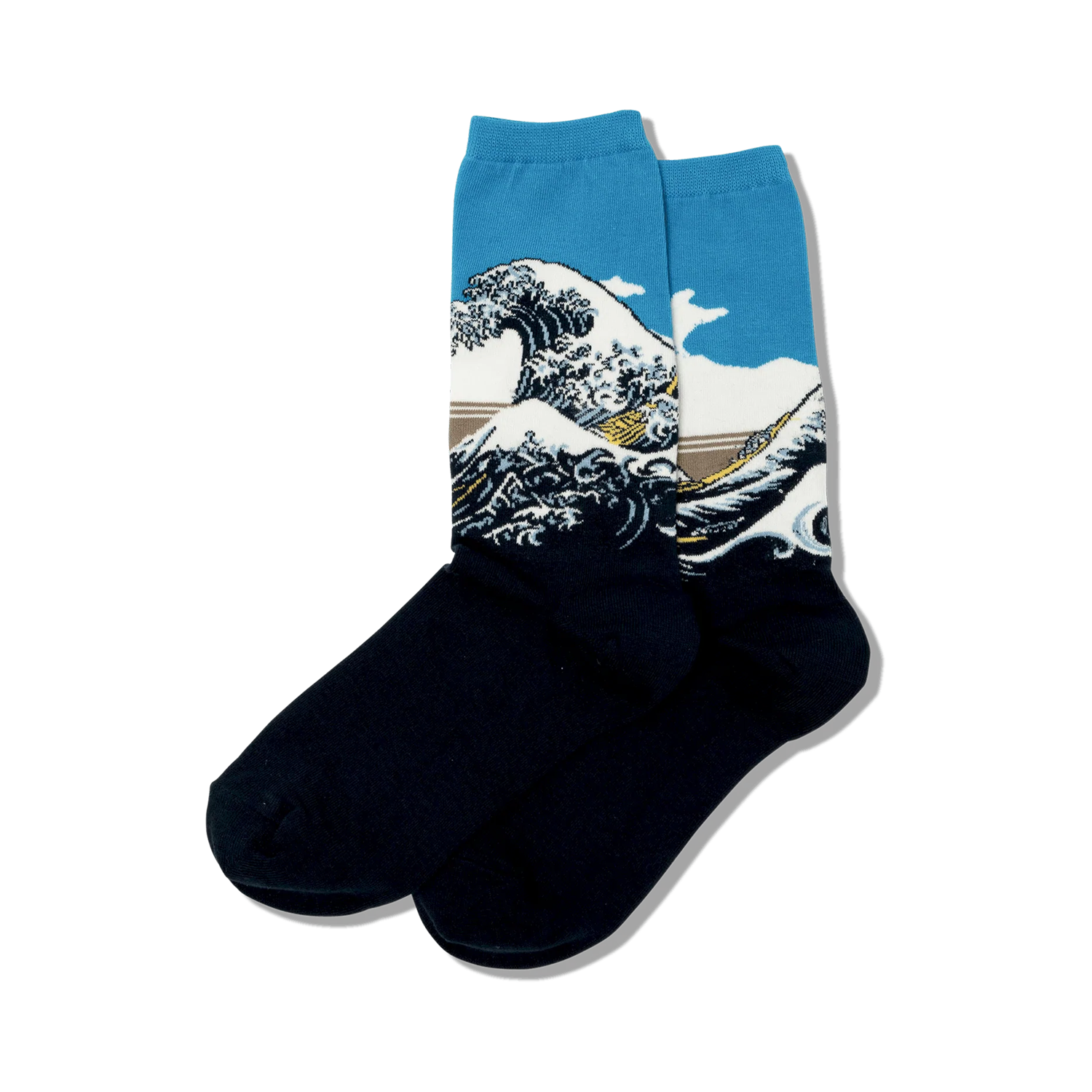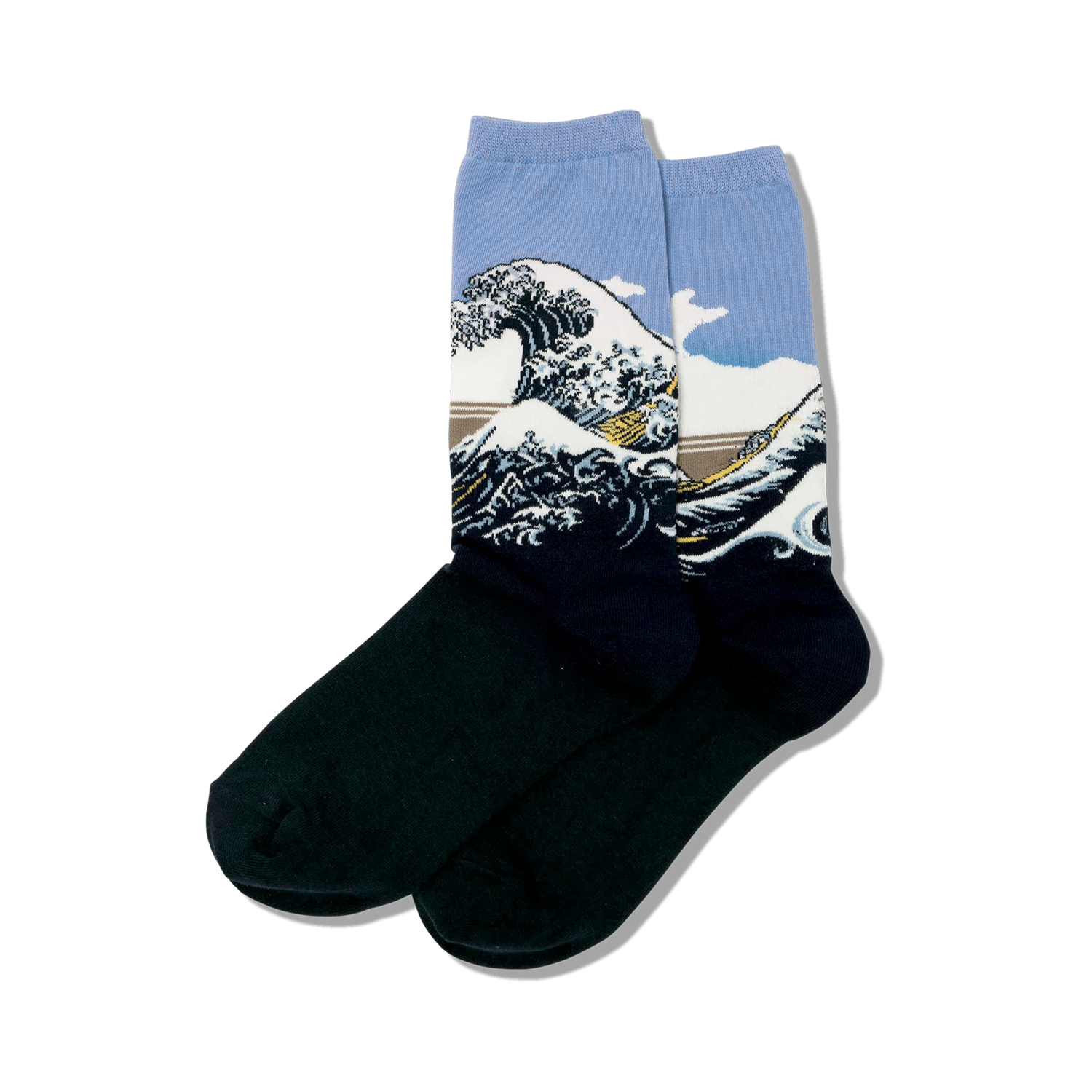 All the beauty of the beach, with none of the sand getting into every crevice of your body. This pair of awesome socks takes you through a beautiful interpretation of everyone's favorite Japanese masterpiece. Hokusai's Great Wave is an iconic woodblock print created in the 1800s. Wear a unique piece of art history on your feet. These cool novelty socks would make a great gift for art lovers and history fans!